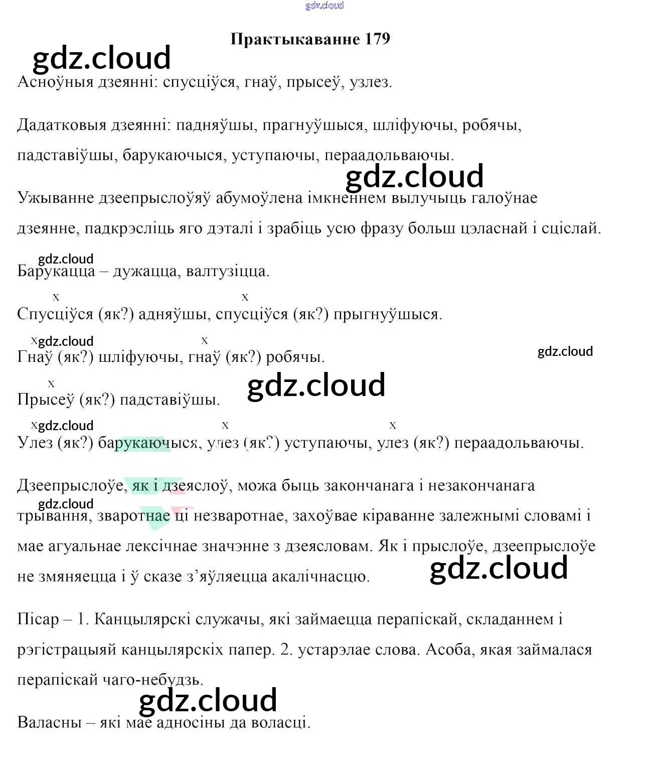 Ответ на задание 179 Учебник Белорусский язык за 7 (седьмой) класс Валочка, Язерская 2020