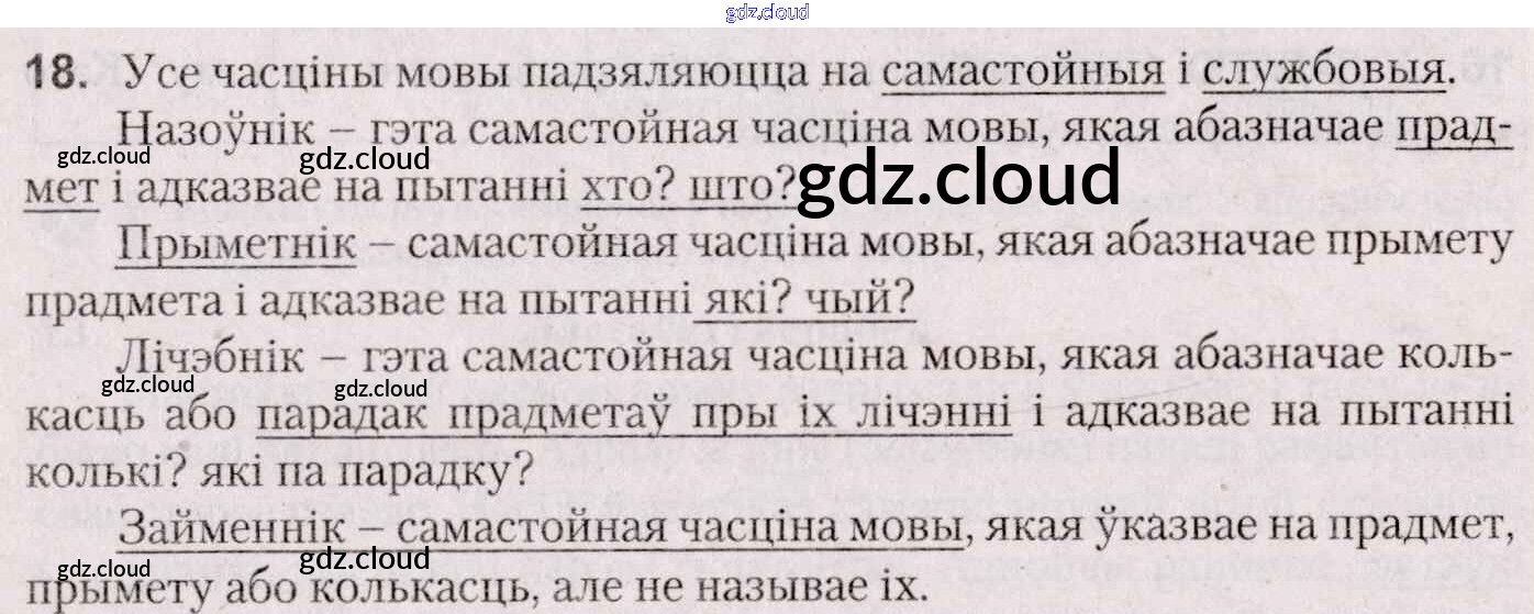 Ответ на задание 18 Учебник Белорусский язык за 7 (седьмой) класс Валочка, Язерская 2020