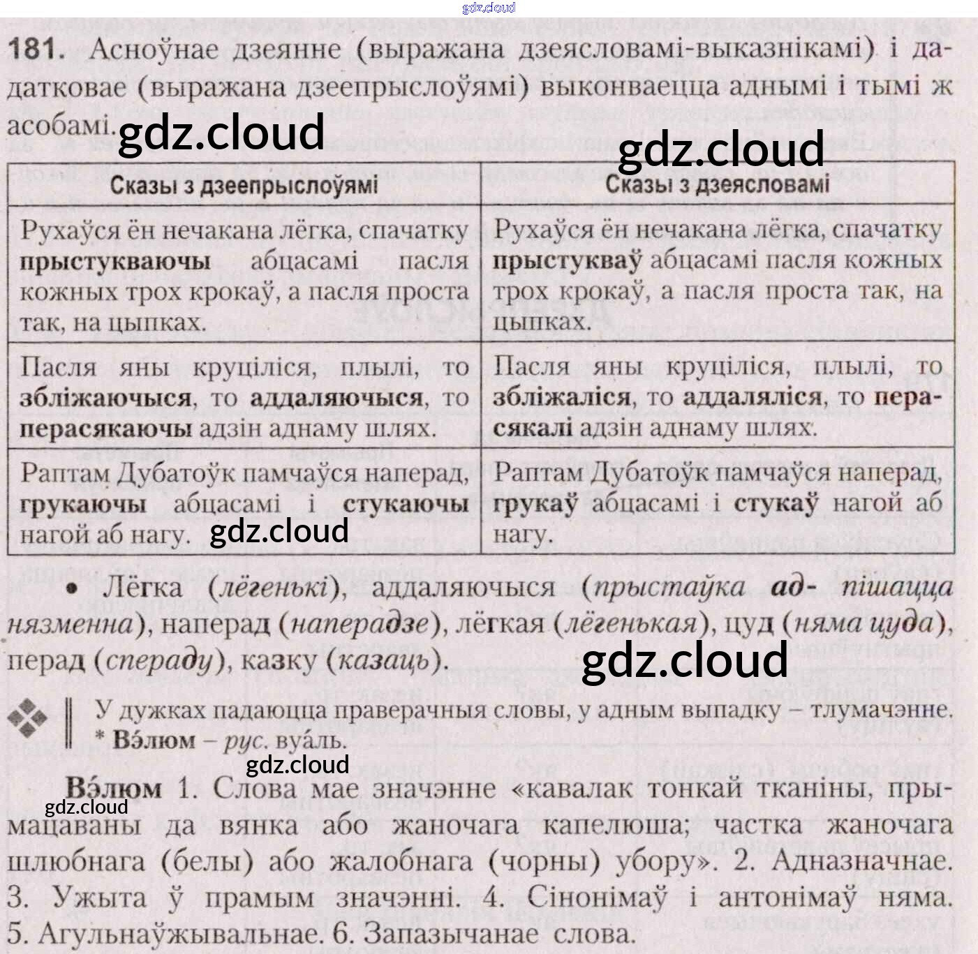 Ответ на задание 181 Учебник Белорусский язык за 7 (седьмой) класс Валочка, Язерская 2020