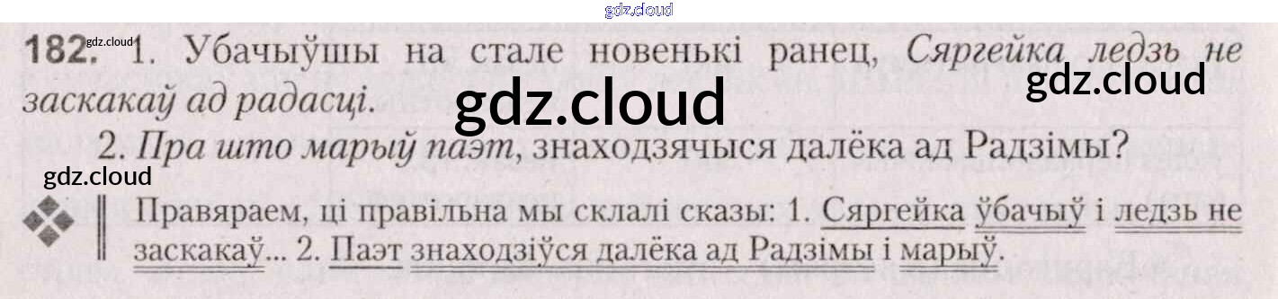 Ответ на задание 182 Учебник Белорусский язык за 7 (седьмой) класс Валочка, Язерская 2020