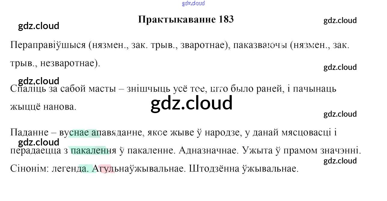 Ответ на задание 183 Учебник Белорусский язык за 7 (седьмой) класс Валочка, Язерская 2020