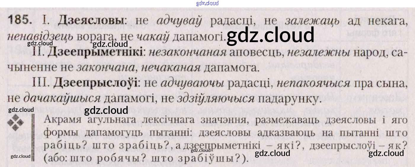 Ответ на задание 185 Учебник Белорусский язык за 7 (седьмой) класс Валочка, Язерская 2020