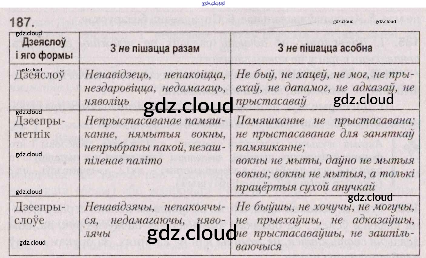 Ответ на задание 187 Учебник Белорусский язык за 7 (седьмой) класс Валочка, Язерская 2020