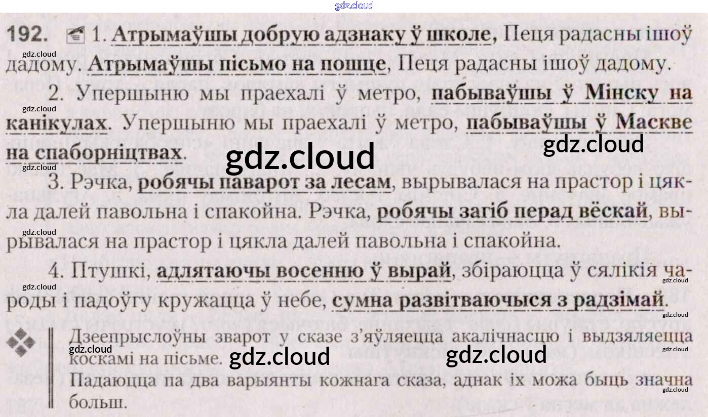Ответ на задание 192 Учебник Белорусский язык за 7 (седьмой) класс Валочка, Язерская 2020
