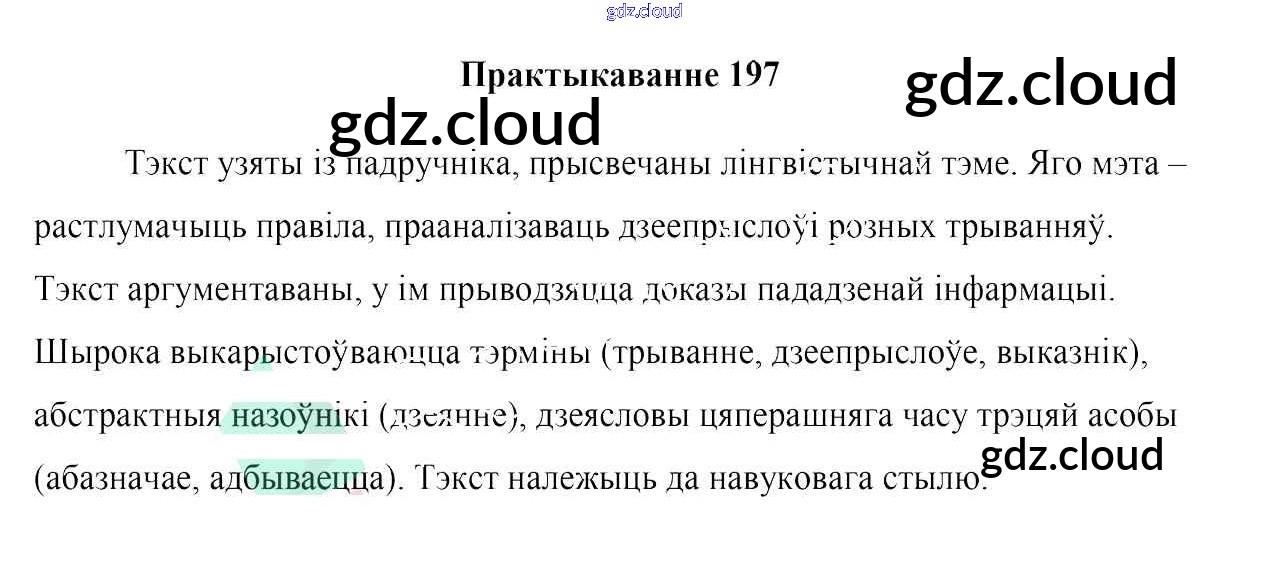 Ответ на задание 197 Учебник Белорусский язык за 7 (седьмой) класс Валочка, Язерская 2020