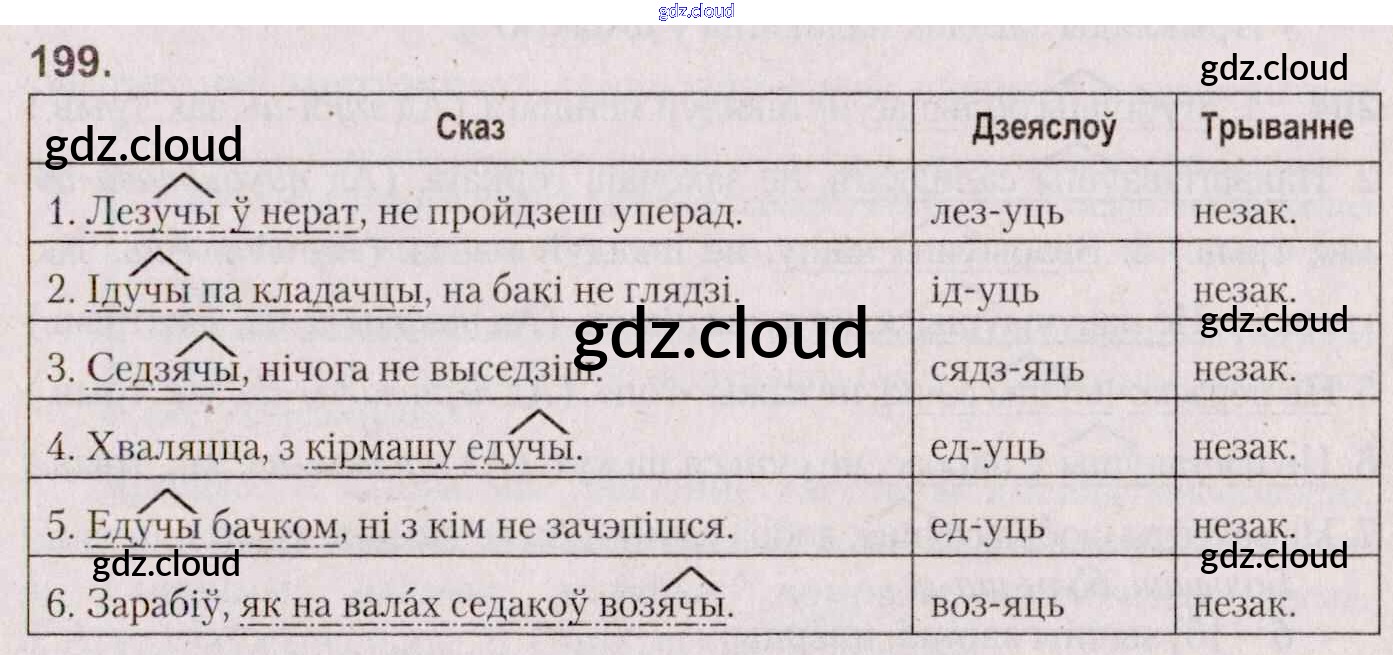 Ответ на задание 199 Учебник Белорусский язык за 7 (седьмой) класс Валочка, Язерская 2020