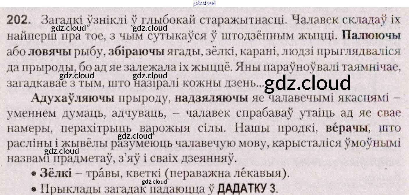 Ответ на задание 202 Учебник Белорусский язык за 7 (седьмой) класс Валочка, Язерская 2020