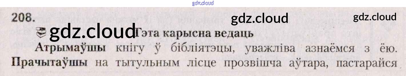 Ответ на задание 208 Учебник Белорусский язык за 7 (седьмой) класс Валочка, Язерская 2020