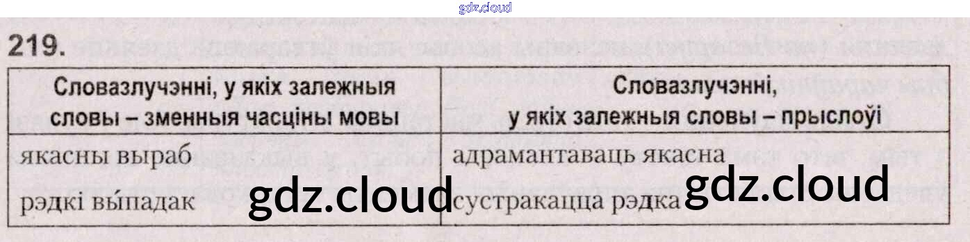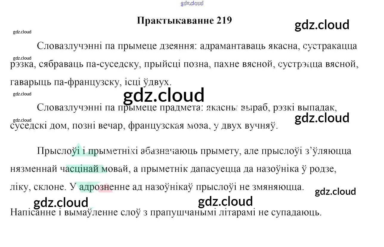 Ответ на задание 219 Учебник Белорусский язык за 7 (седьмой) класс Валочка, Язерская 2020