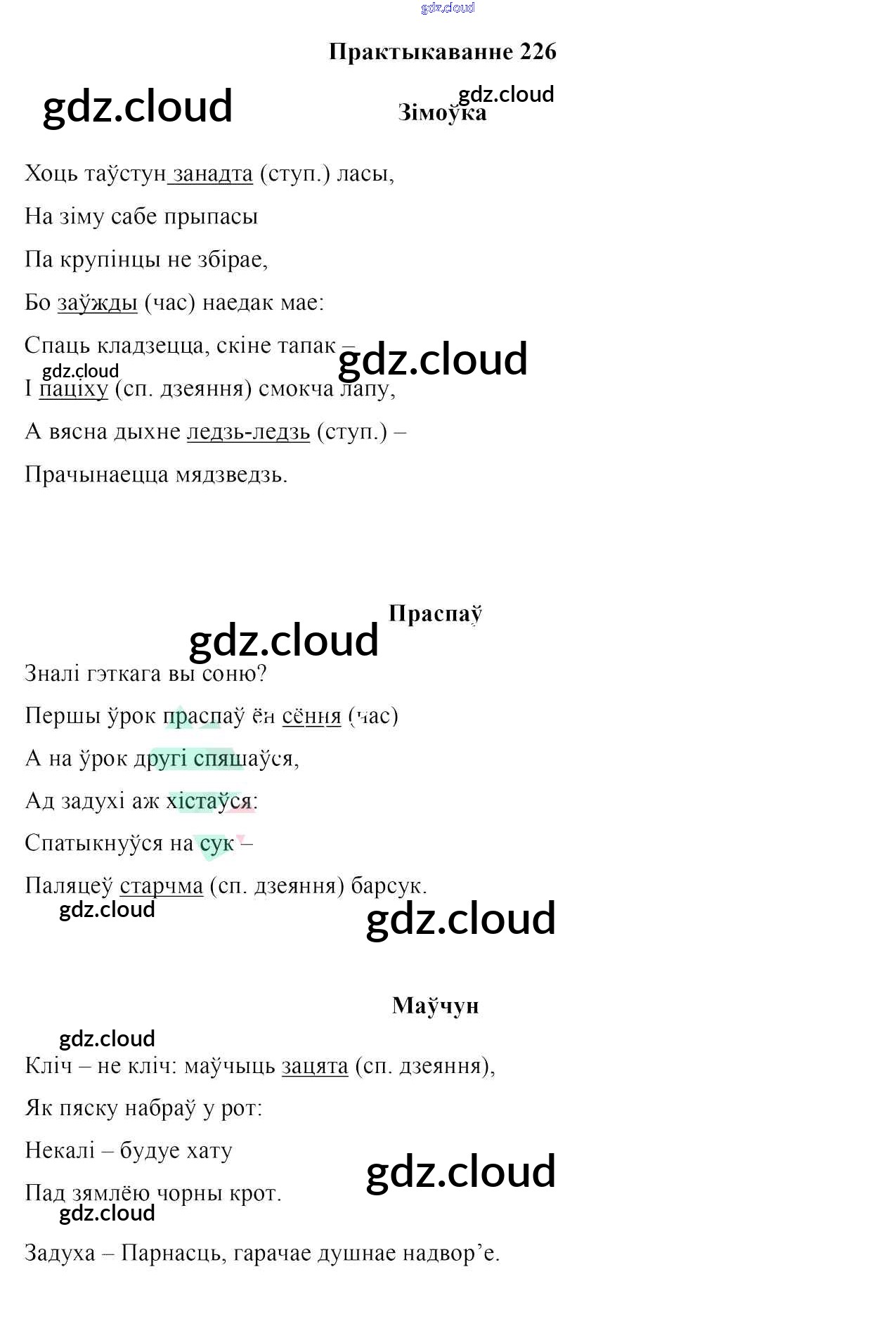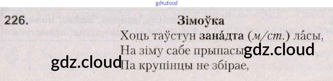 Ответ на задание 226 Учебник Белорусский язык за 7 (седьмой) класс Валочка, Язерская 2020
