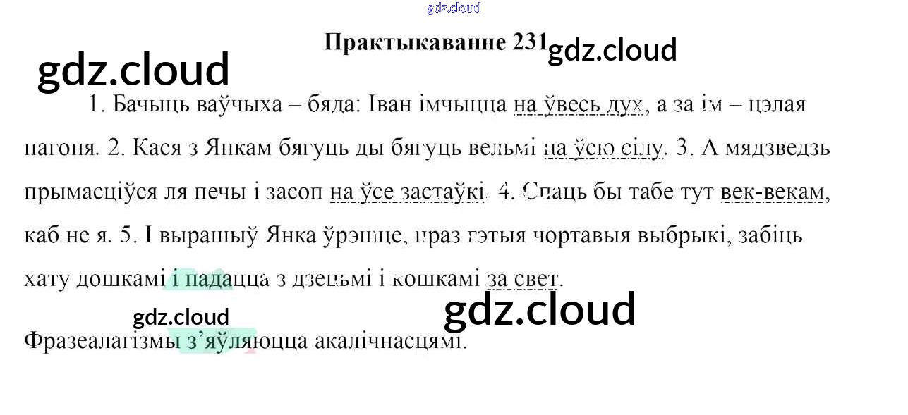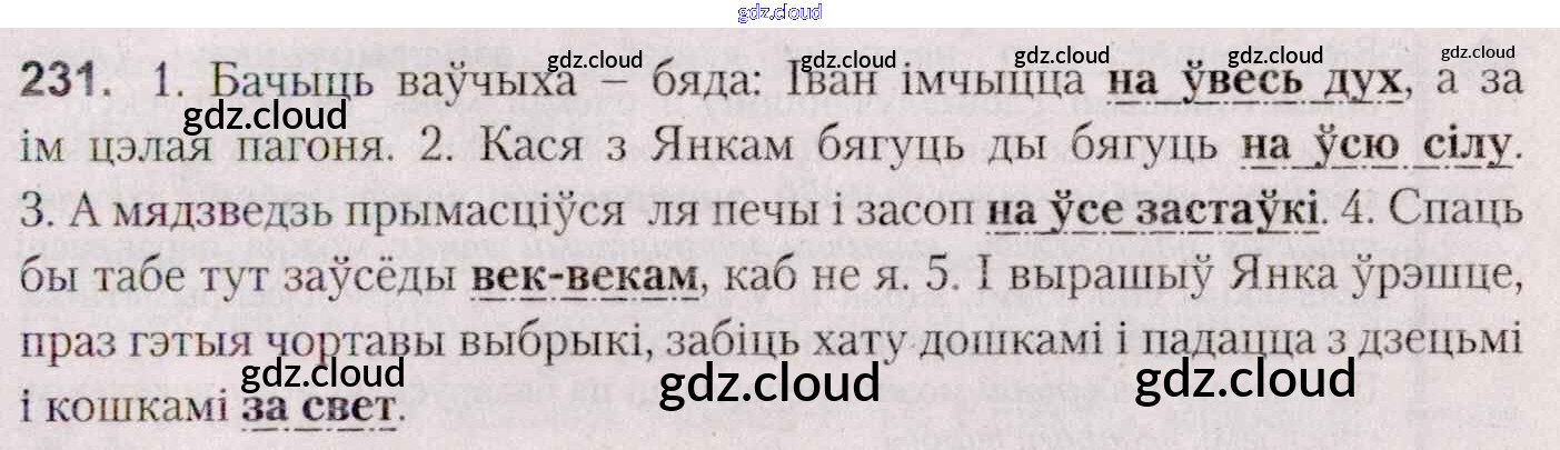 Ответ на задание 231 Учебник Белорусский язык за 7 (седьмой) класс Валочка, Язерская 2020