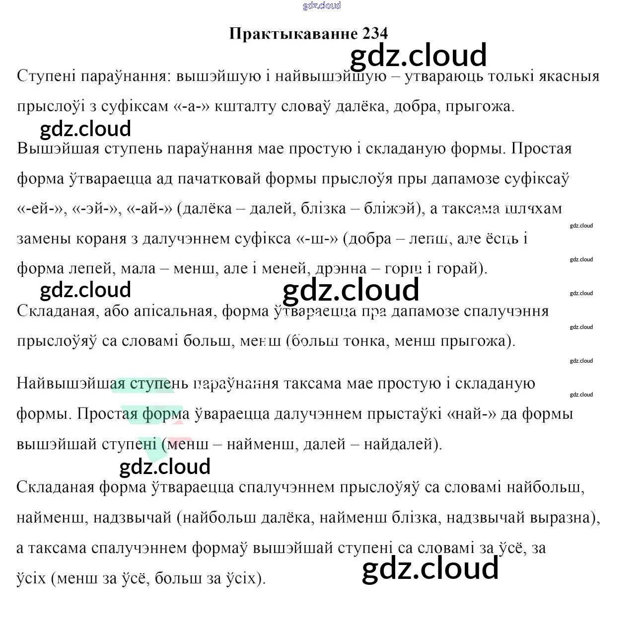 Ответ на задание 234 Учебник Белорусский язык за 7 (седьмой) класс Валочка, Язерская 2020