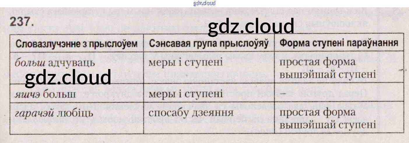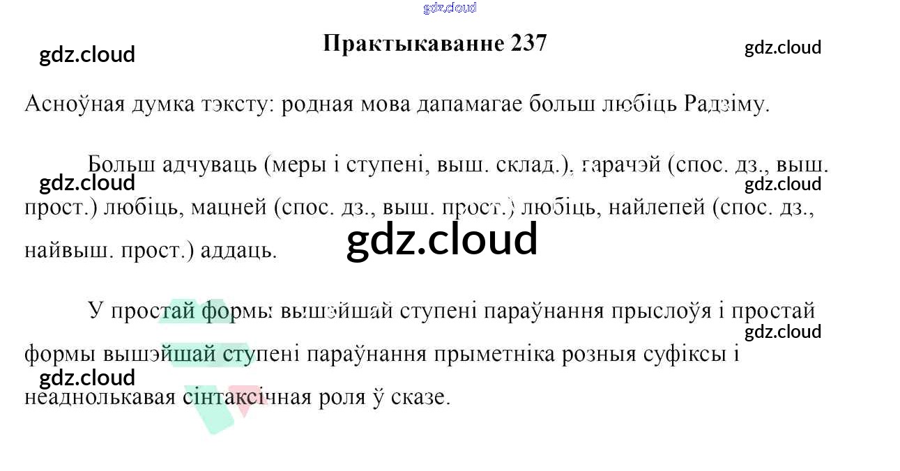 Ответ на задание 237 Учебник Белорусский язык за 7 (седьмой) класс Валочка, Язерская 2020