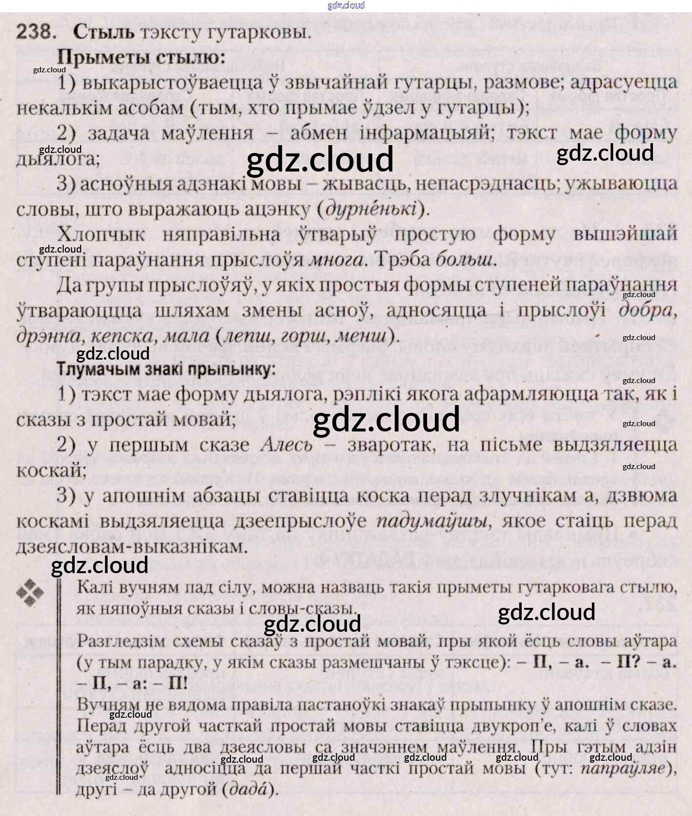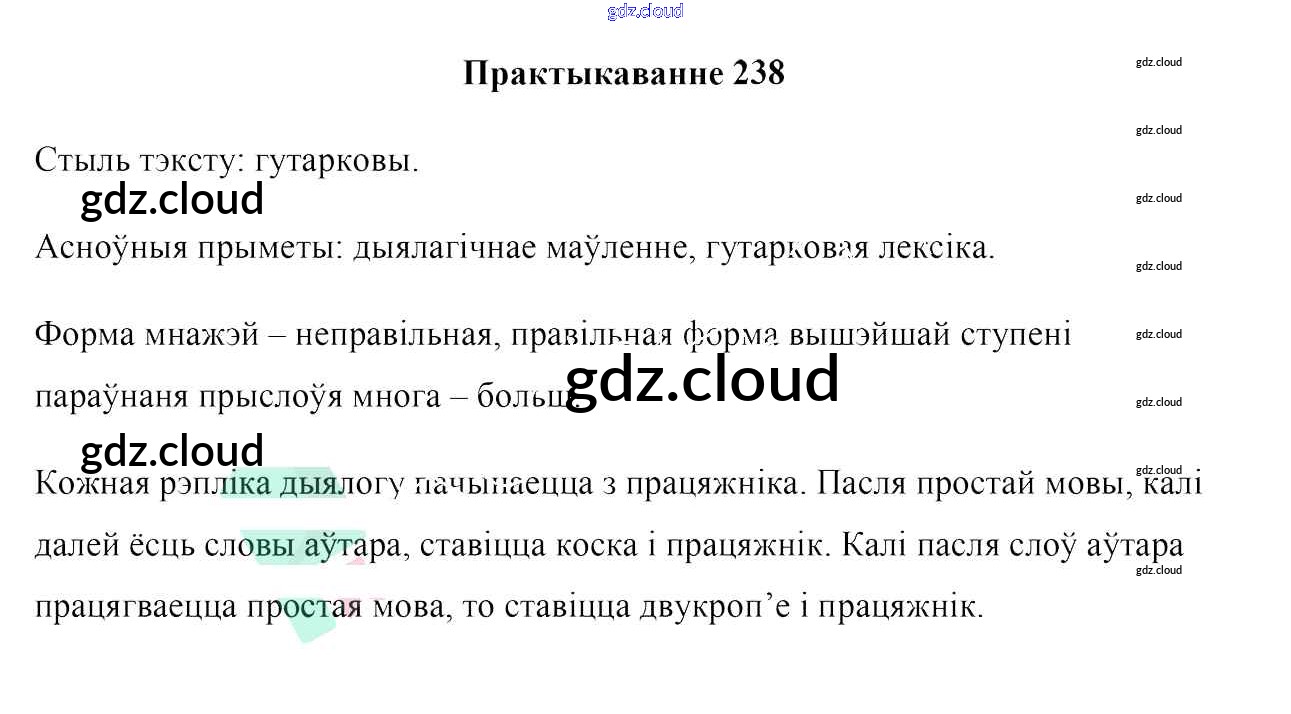 Ответ на задание 238 Учебник Белорусский язык за 7 (седьмой) класс Валочка, Язерская 2020
