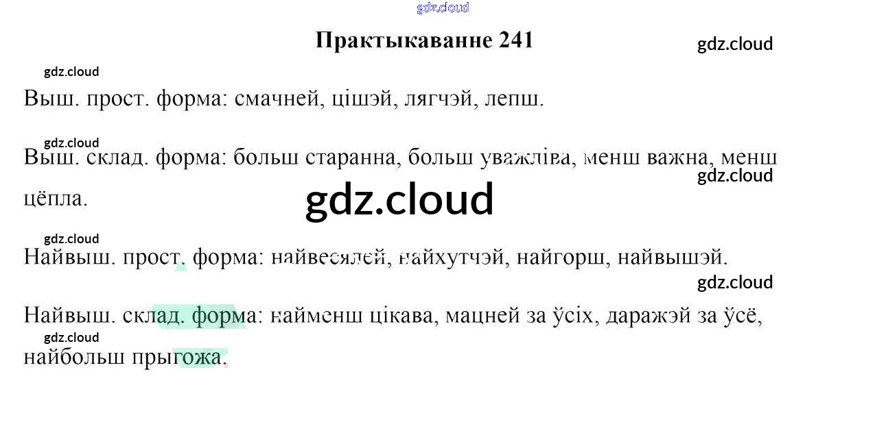 Ответ на задание 241 Учебник Белорусский язык за 7 (седьмой) класс Валочка, Язерская 2020