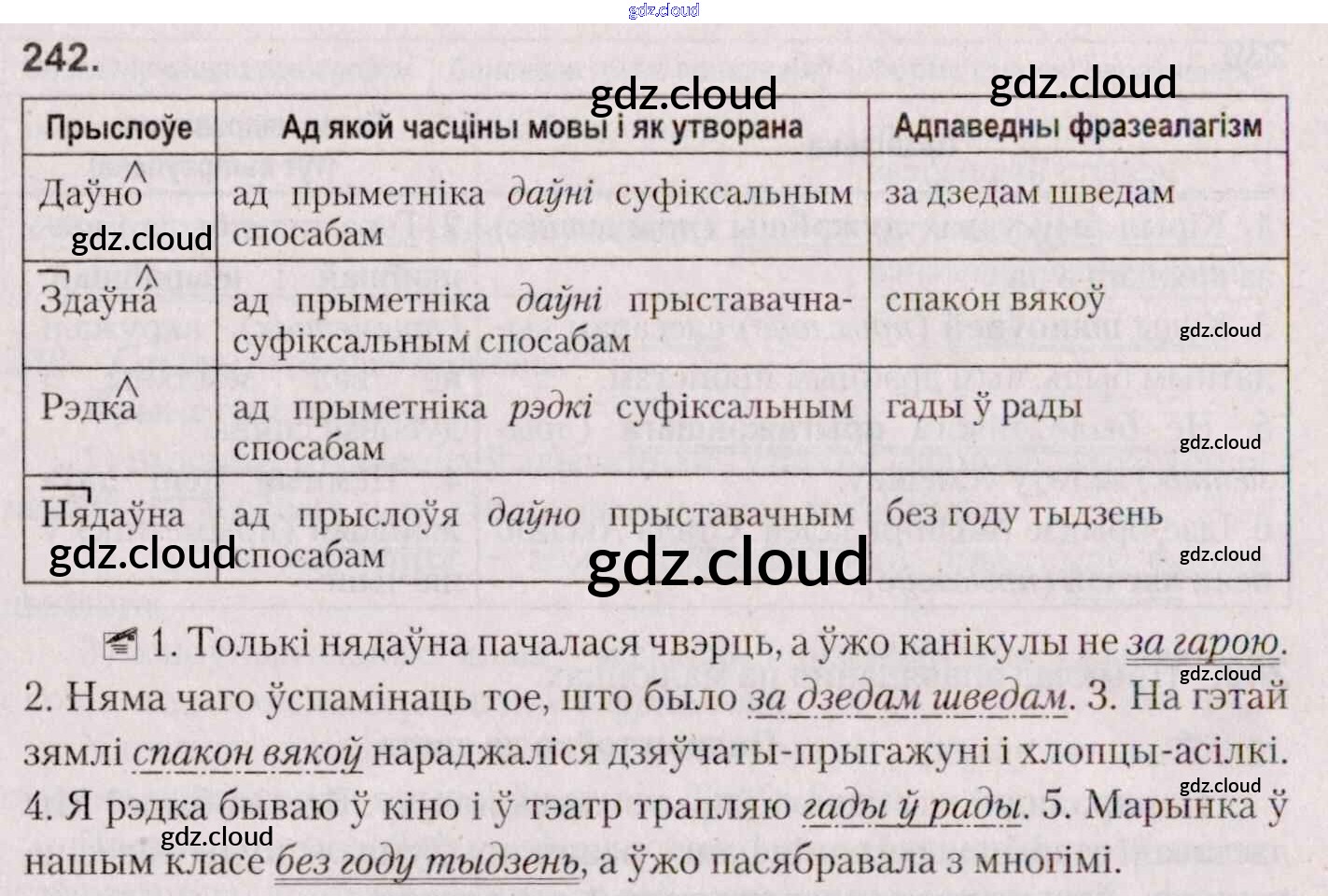 Ответ на задание 242 Учебник Белорусский язык за 7 (седьмой) класс Валочка, Язерская 2020
