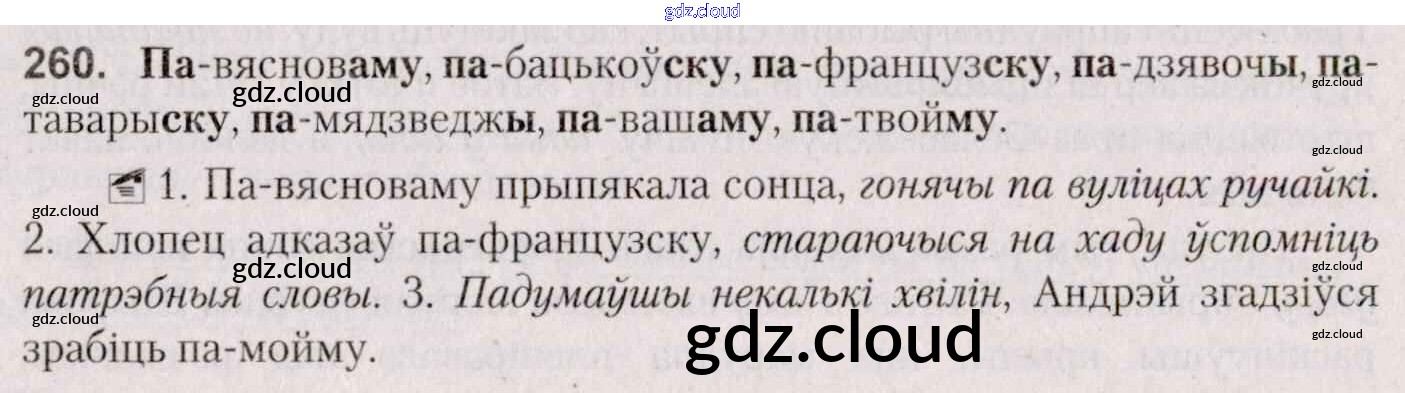 Ответ на задание 260 Учебник Белорусский язык за 7 (седьмой) класс Валочка, Язерская 2020
