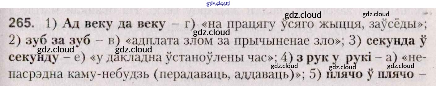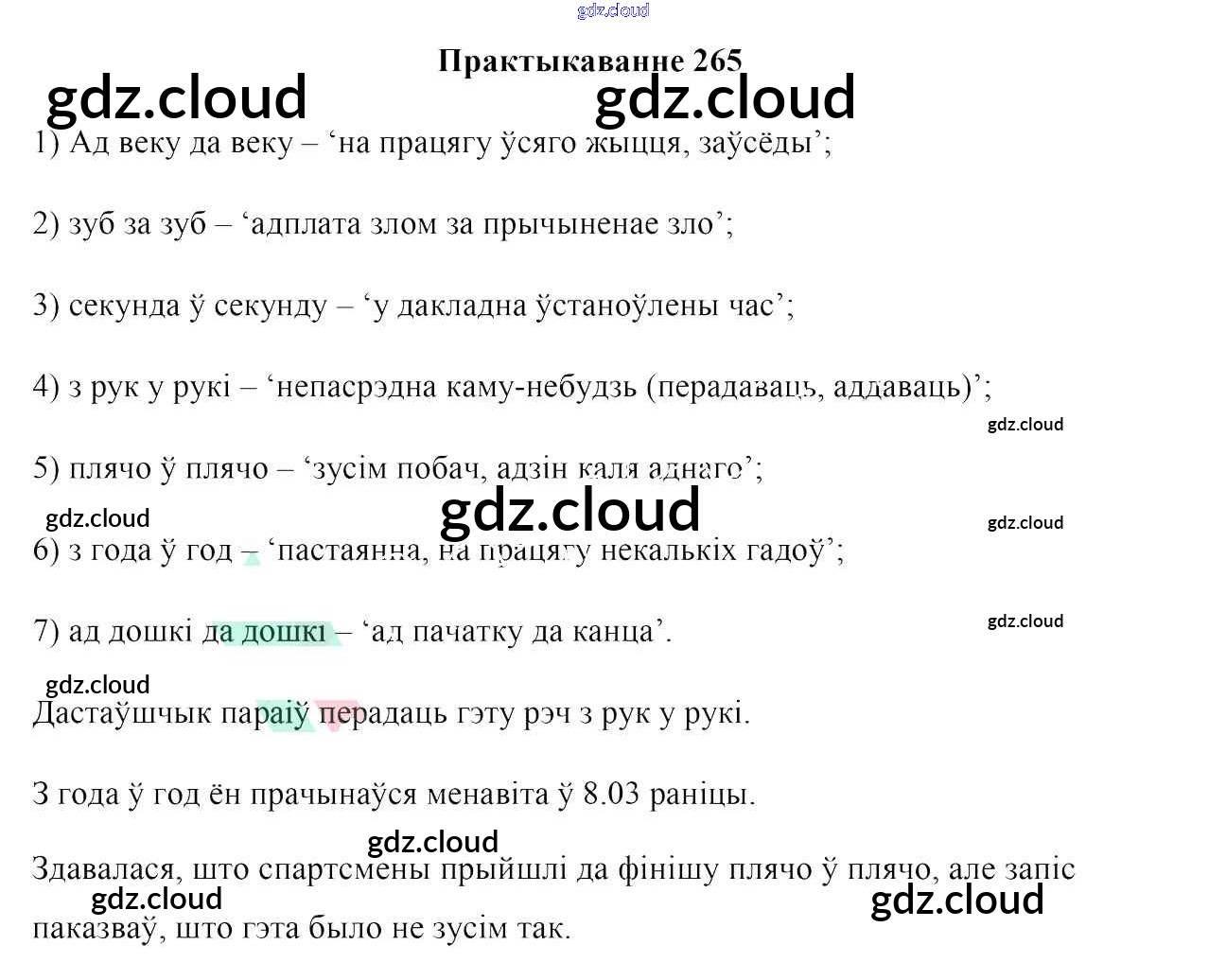 Ответ на задание 265 Учебник Белорусский язык за 7 (седьмой) класс Валочка, Язерская 2020