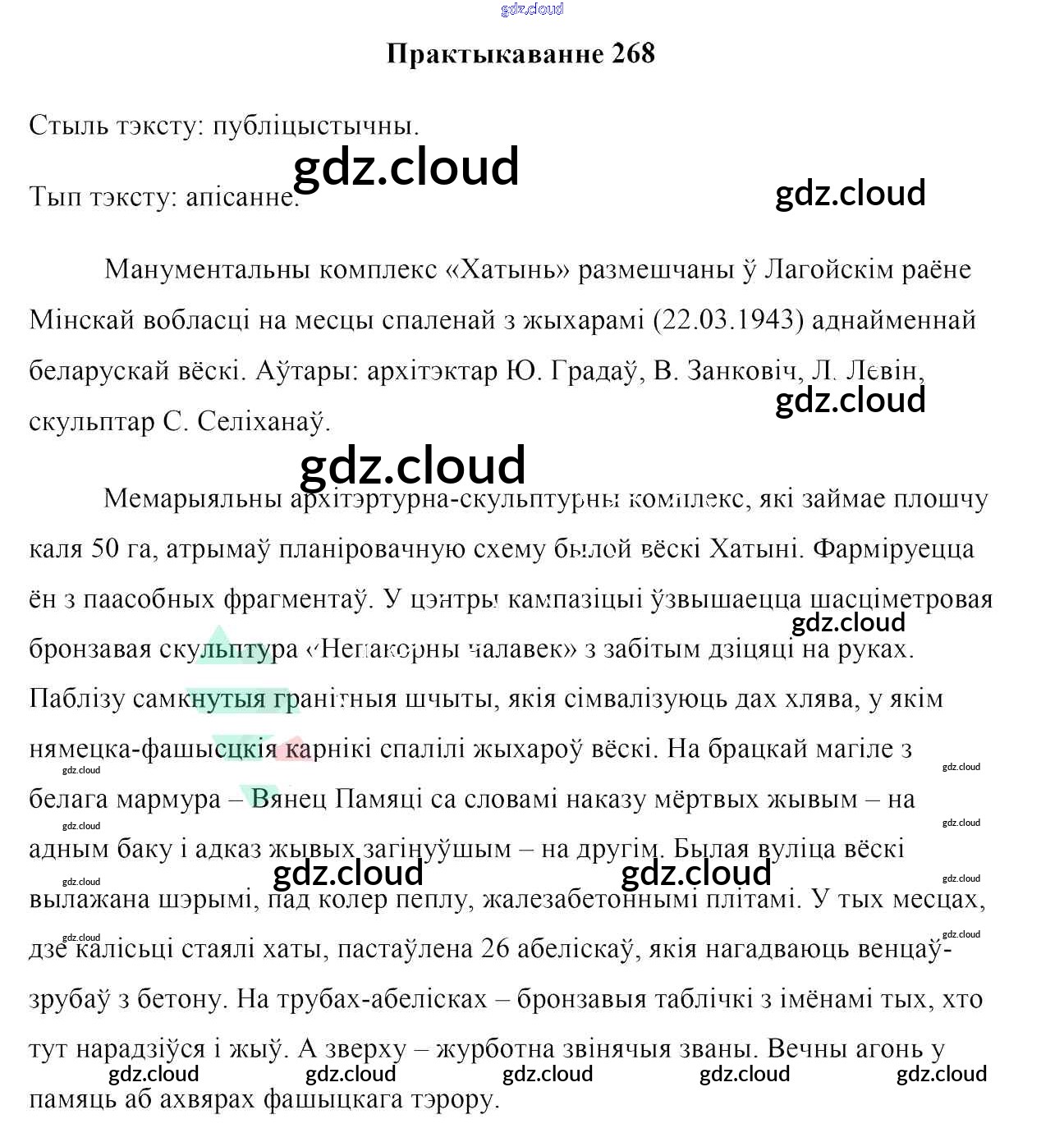 Ответ на задание 268 Учебник Белорусский язык за 7 (седьмой) класс Валочка, Язерская 2020
