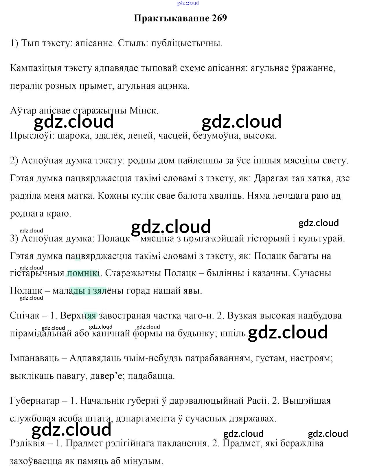 Ответ на задание 269 Учебник Белорусский язык за 7 (седьмой) класс Валочка, Язерская 2020