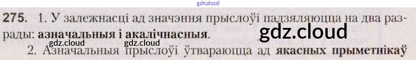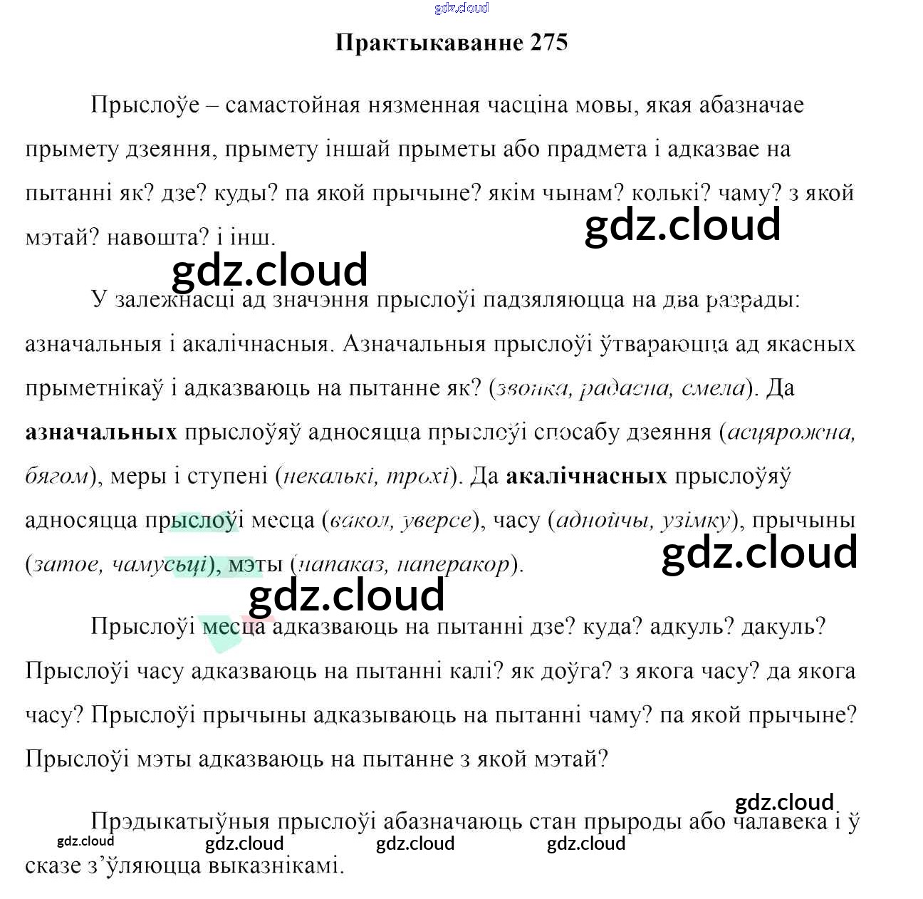 Ответ на задание 275 Учебник Белорусский язык за 7 (седьмой) класс Валочка, Язерская 2020