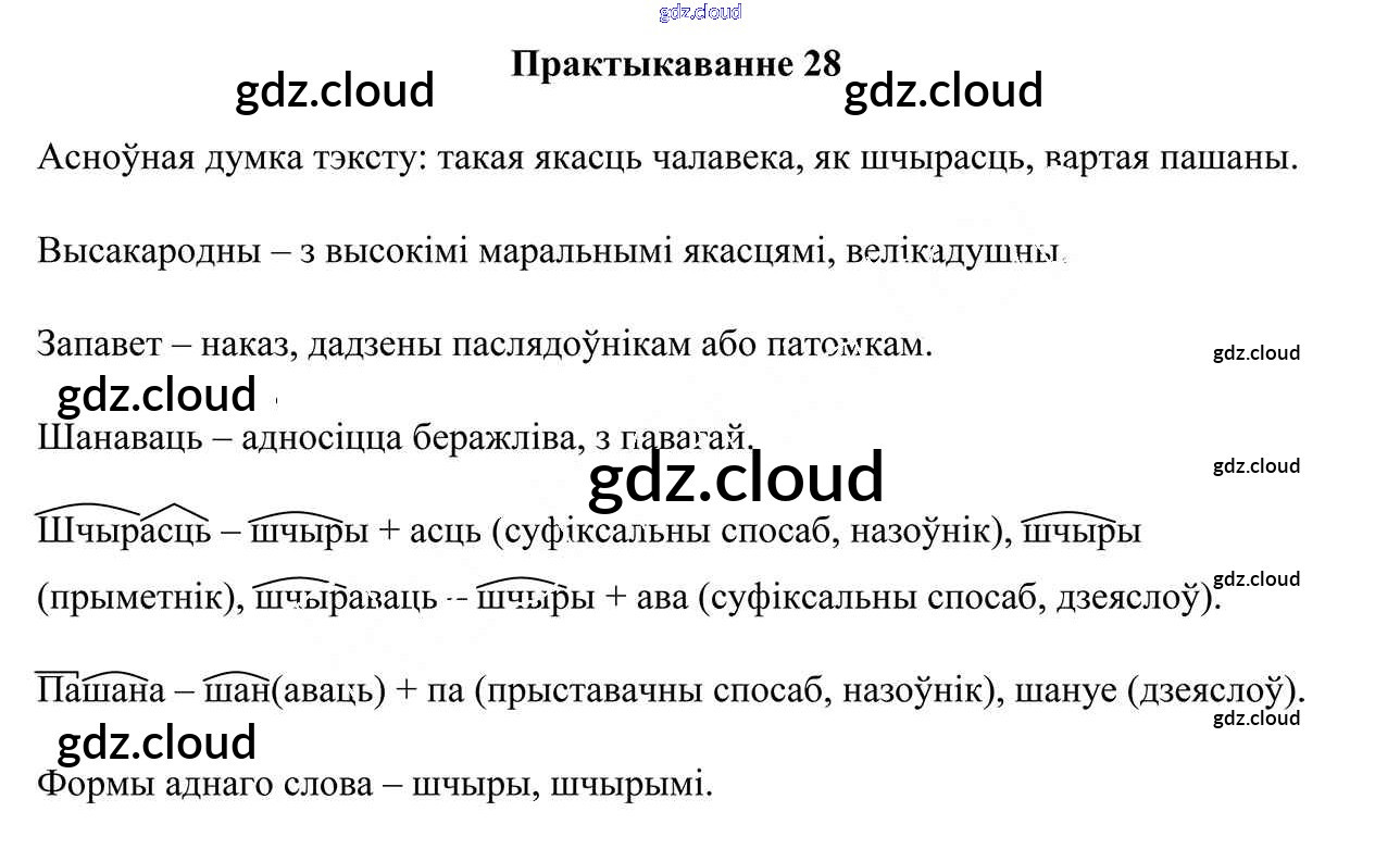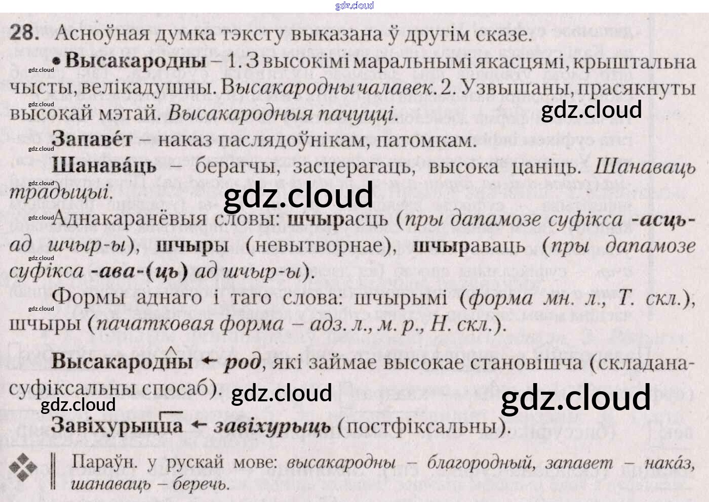 Ответ на задание 28 Учебник Белорусский язык за 7 (седьмой) класс Валочка, Язерская 2020
