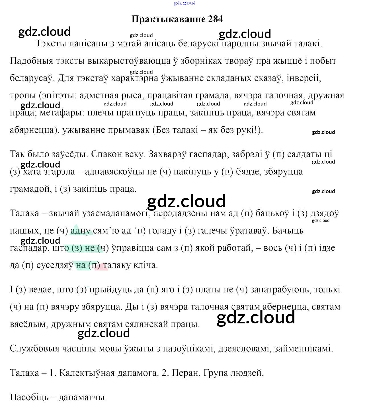 Ответ на задание 284 Учебник Белорусский язык за 7 (седьмой) класс Валочка, Язерская 2020