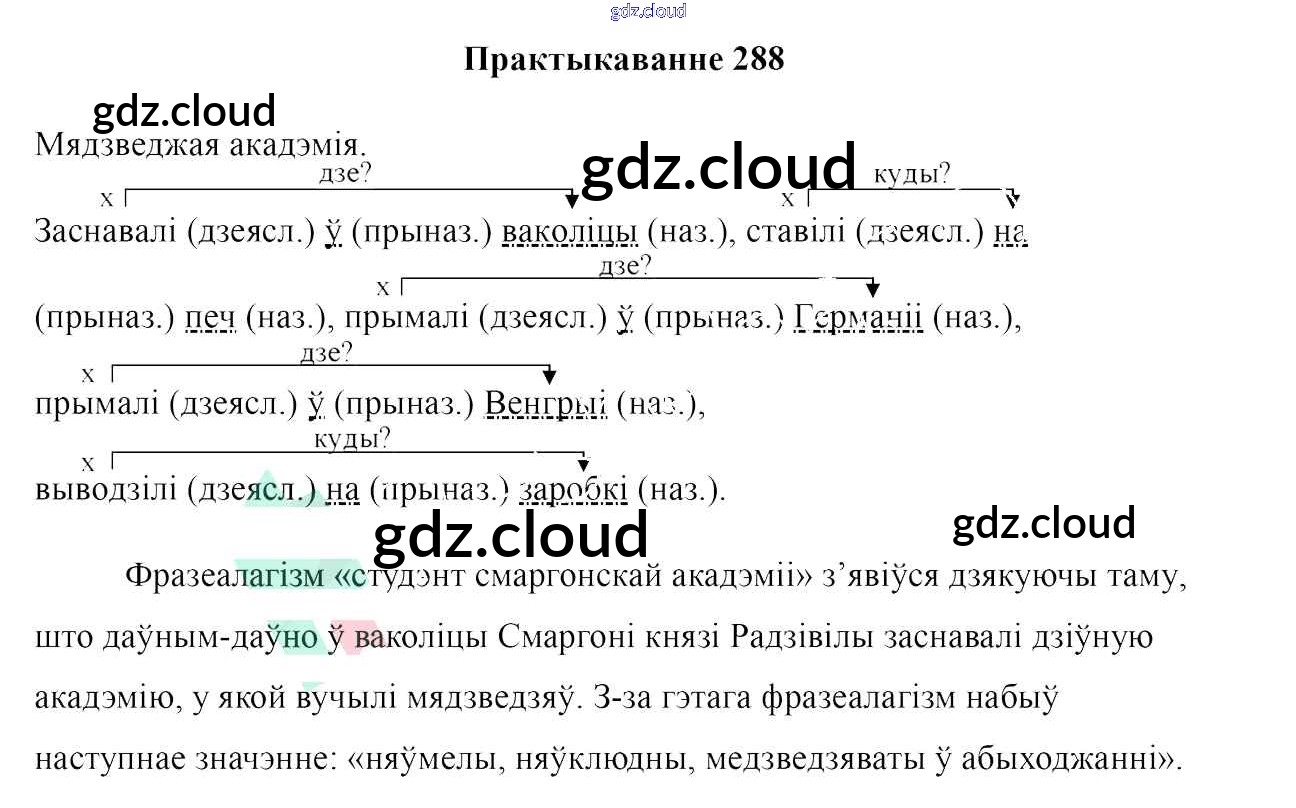 Ответ на задание 288 Учебник Белорусский язык за 7 (седьмой) класс Валочка, Язерская 2020