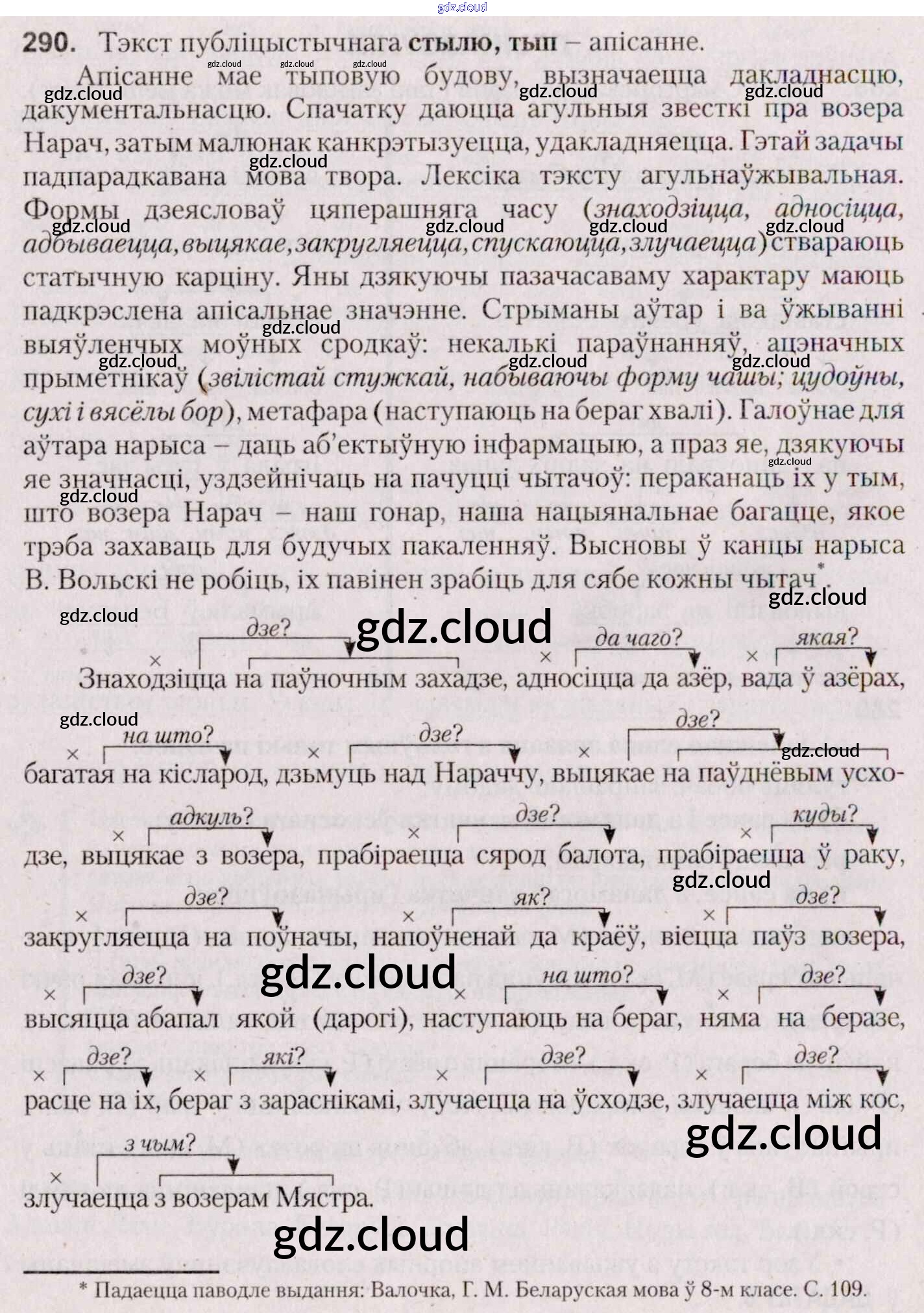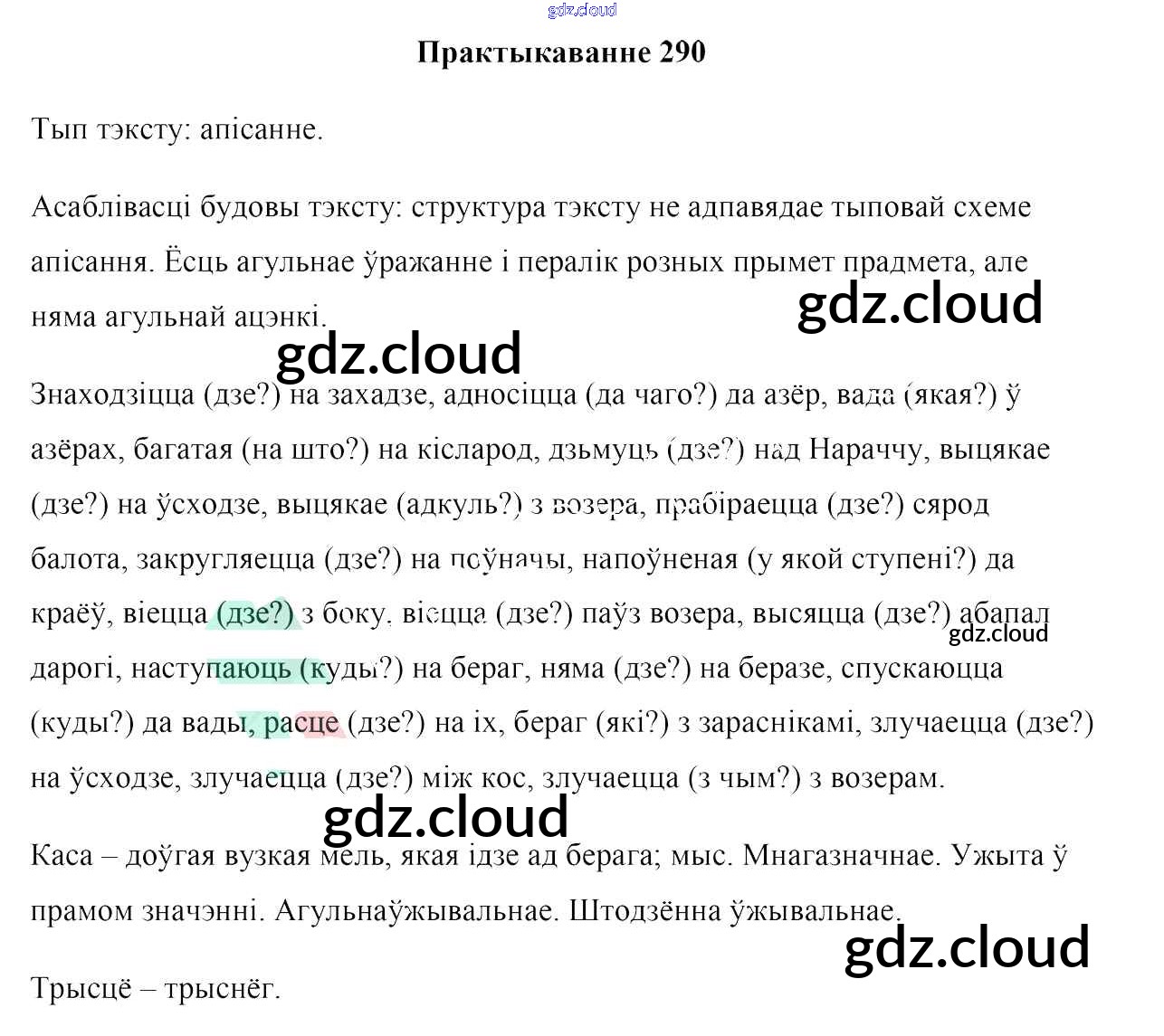 Ответ на задание 290 Учебник Белорусский язык за 7 (седьмой) класс Валочка, Язерская 2020