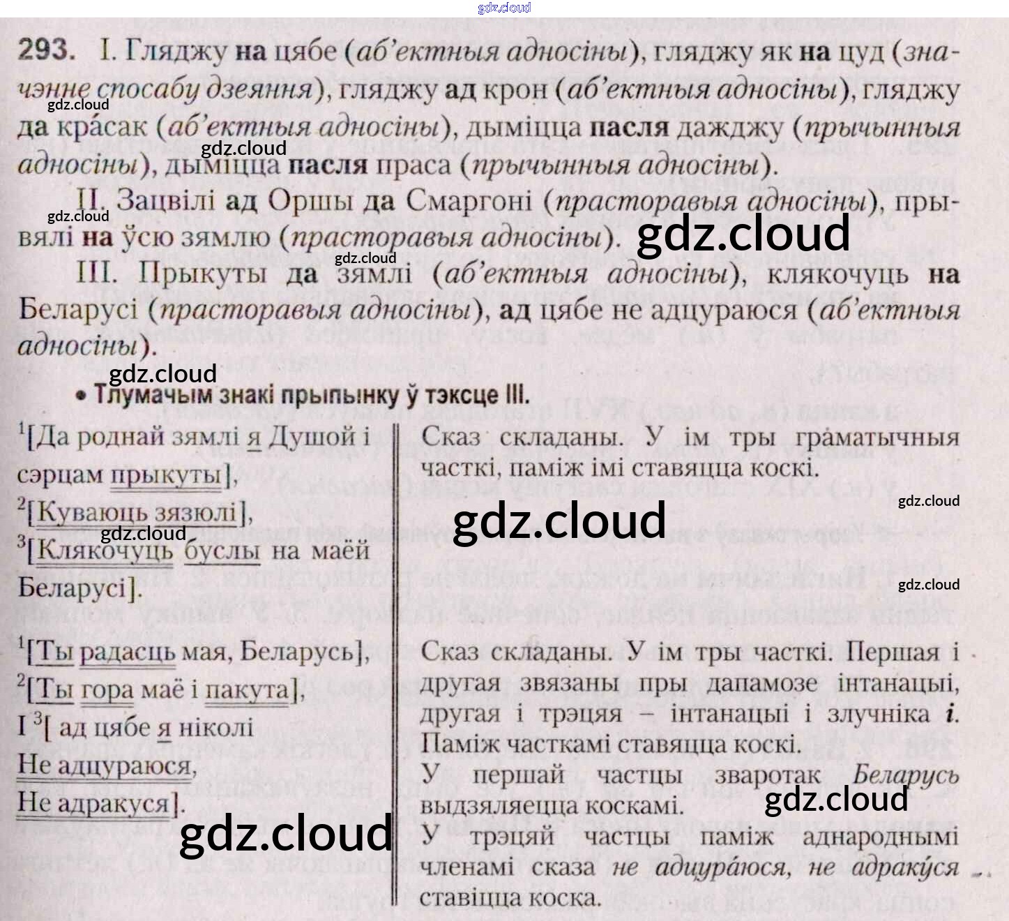 Ответ на задание 293 Учебник Белорусский язык за 7 (седьмой) класс Валочка, Язерская 2020