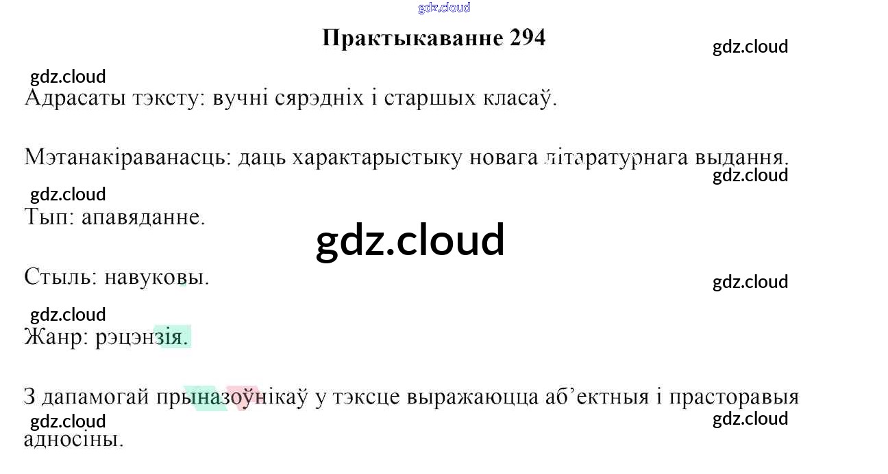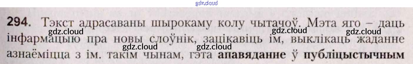 Ответ на задание 294 Учебник Белорусский язык за 7 (седьмой) класс Валочка, Язерская 2020