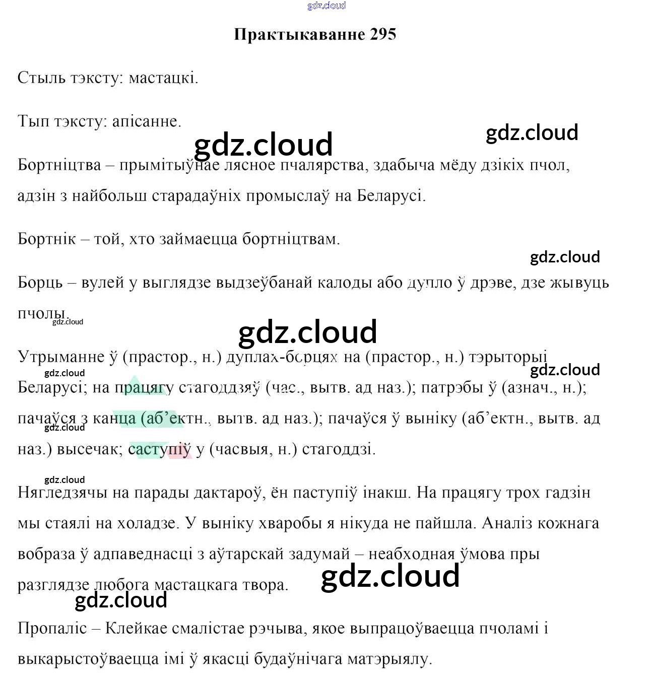 Ответ на задание 295 Учебник Белорусский язык за 7 (седьмой) класс Валочка, Язерская 2020