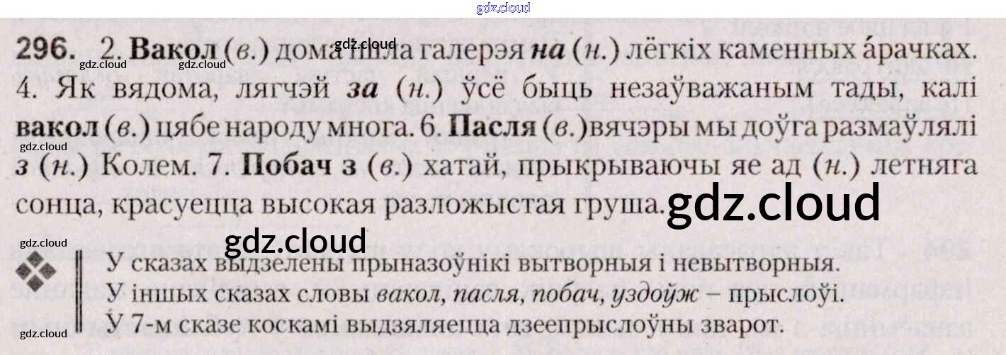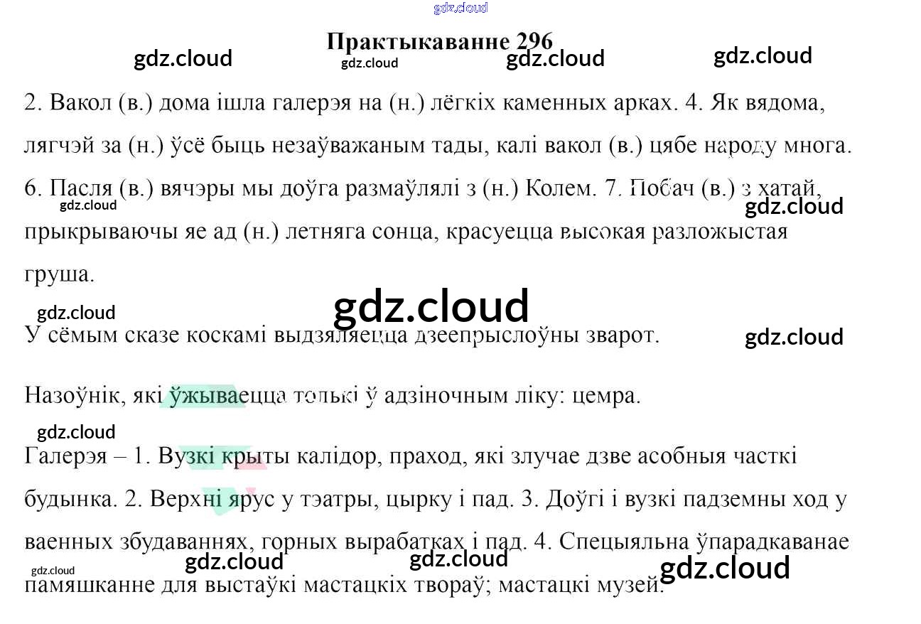 Ответ на задание 296 Учебник Белорусский язык за 7 (седьмой) класс Валочка, Язерская 2020