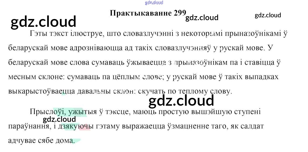 Ответ на задание 299 Учебник Белорусский язык за 7 (седьмой) класс Валочка, Язерская 2020