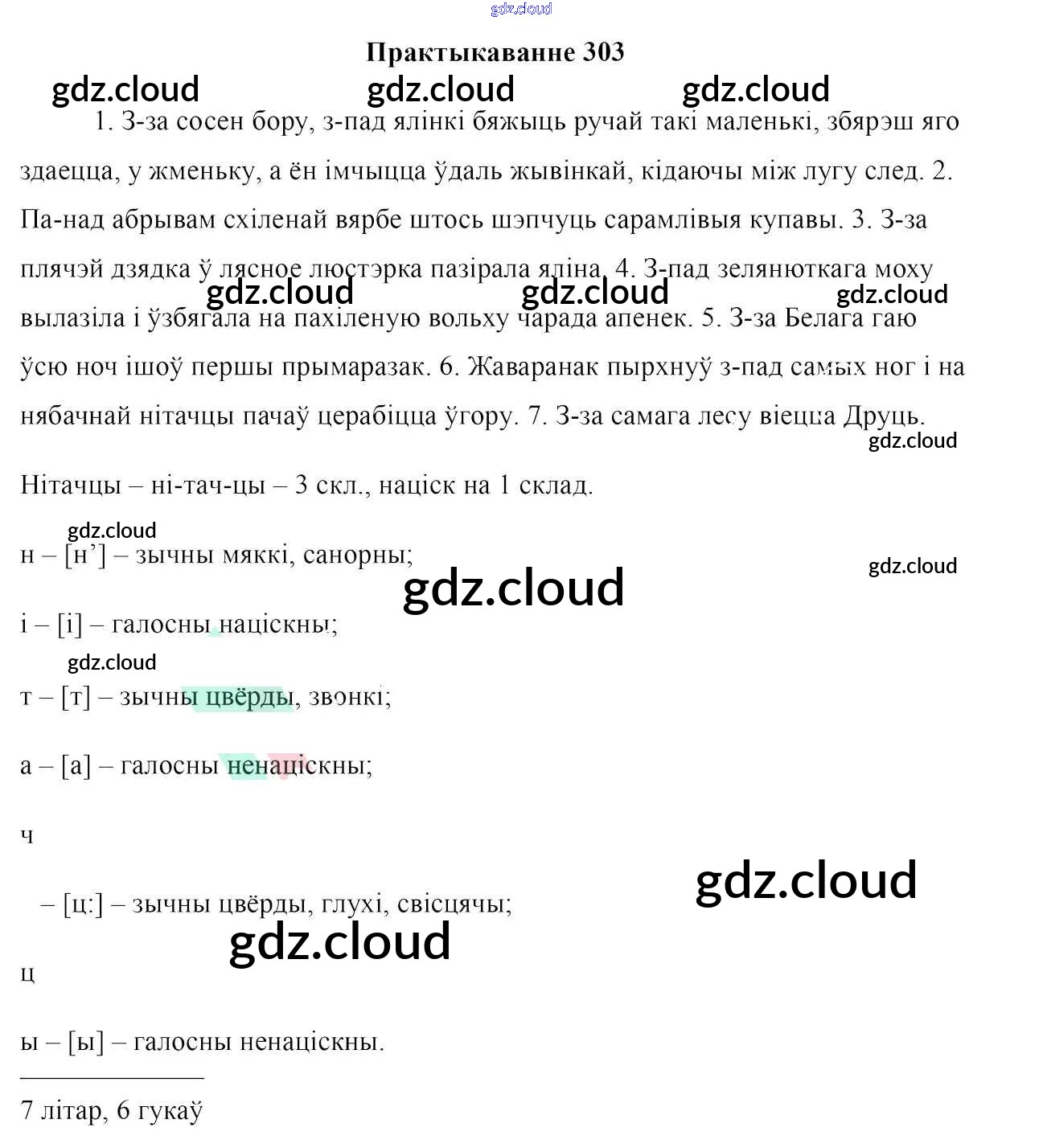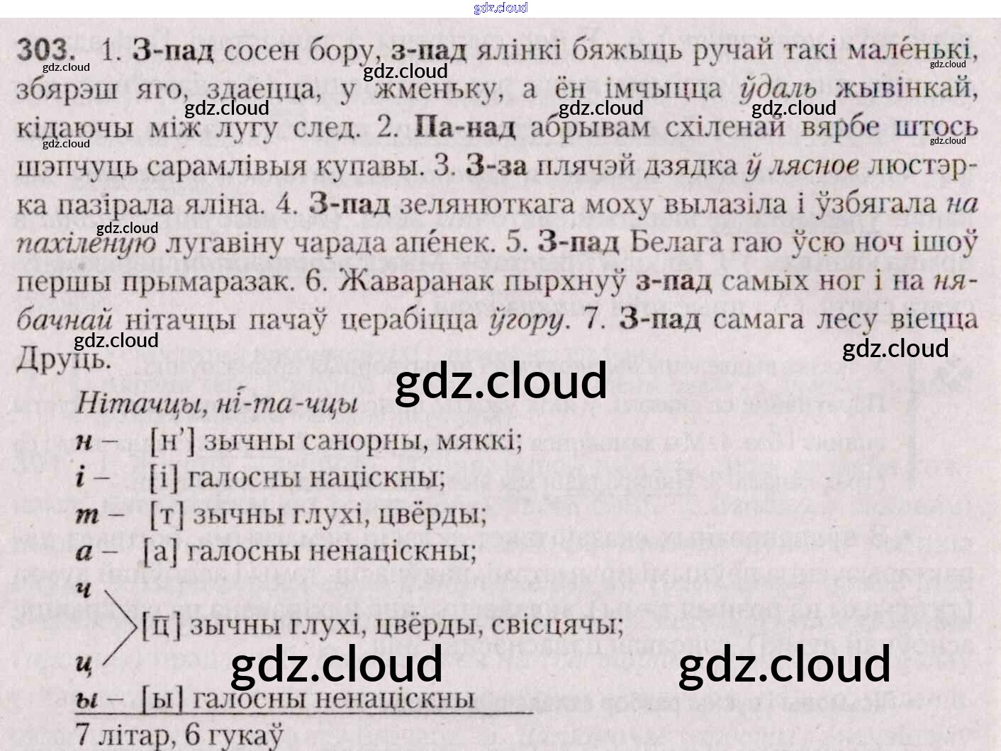 Ответ на задание 303 Учебник Белорусский язык за 7 (седьмой) класс Валочка, Язерская 2020