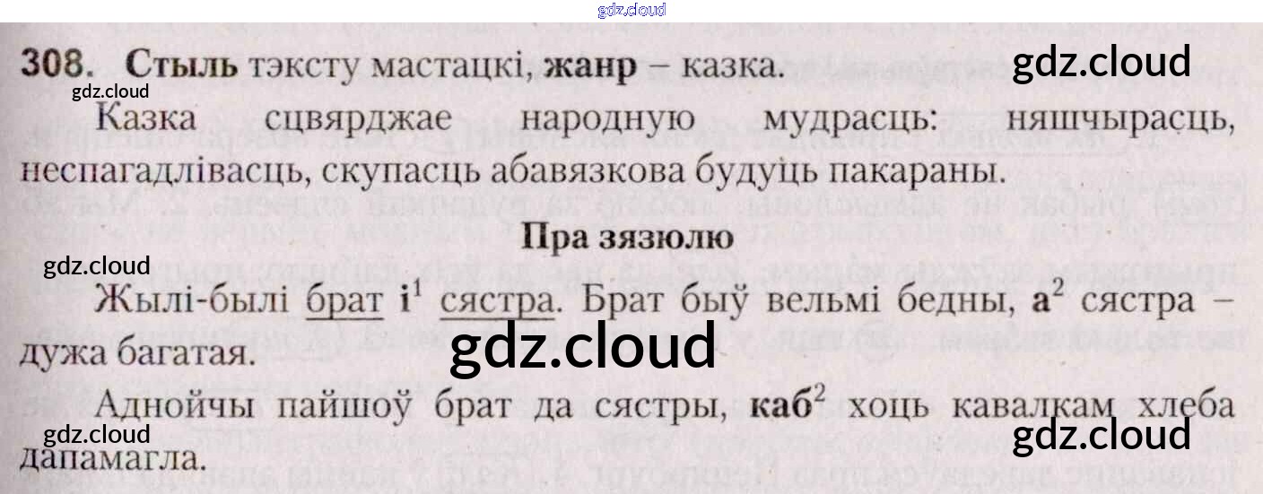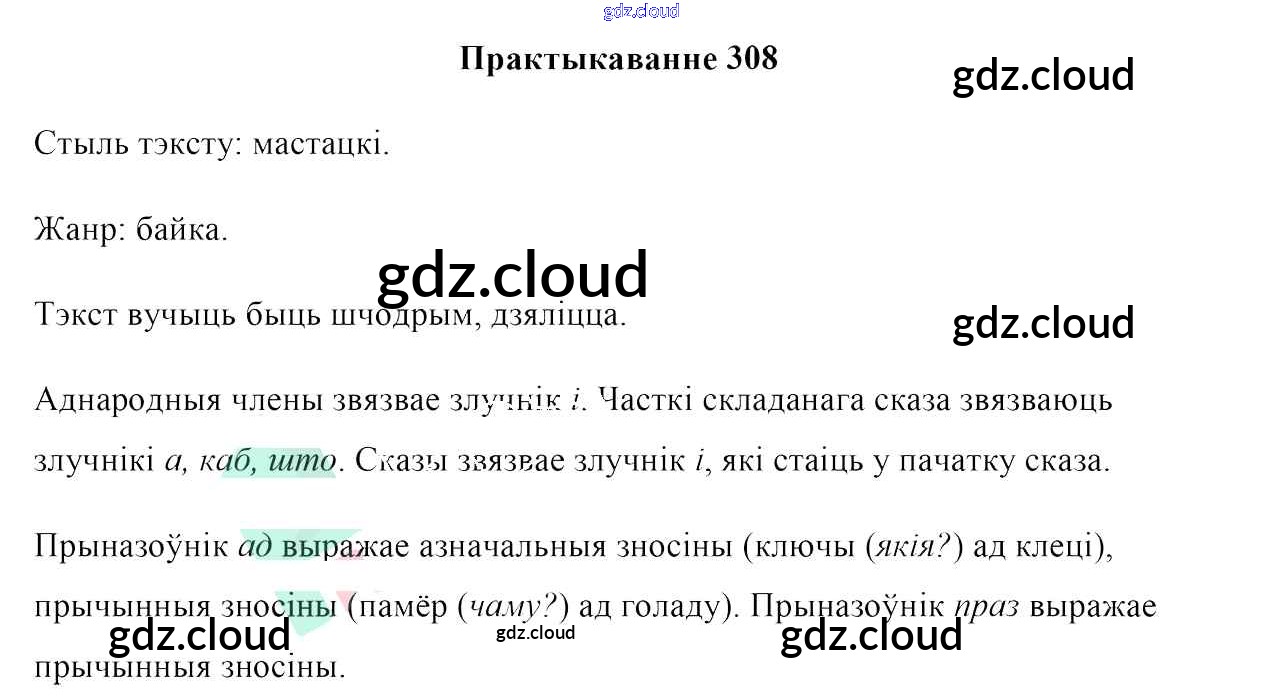 Ответ на задание 308 Учебник Белорусский язык за 7 (седьмой) класс Валочка, Язерская 2020