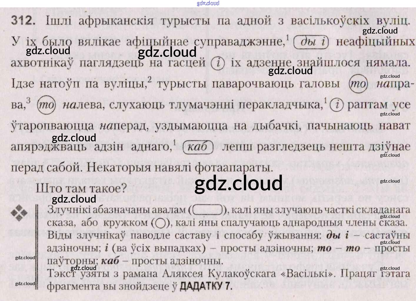 Ответ на задание 312 Учебник Белорусский язык за 7 (седьмой) класс Валочка, Язерская 2020