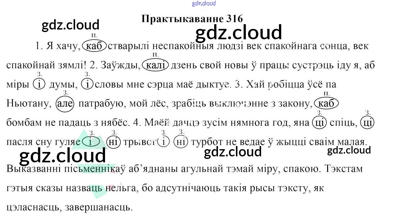 Ответ на задание 316 Учебник Белорусский язык за 7 (седьмой) класс Валочка, Язерская 2020