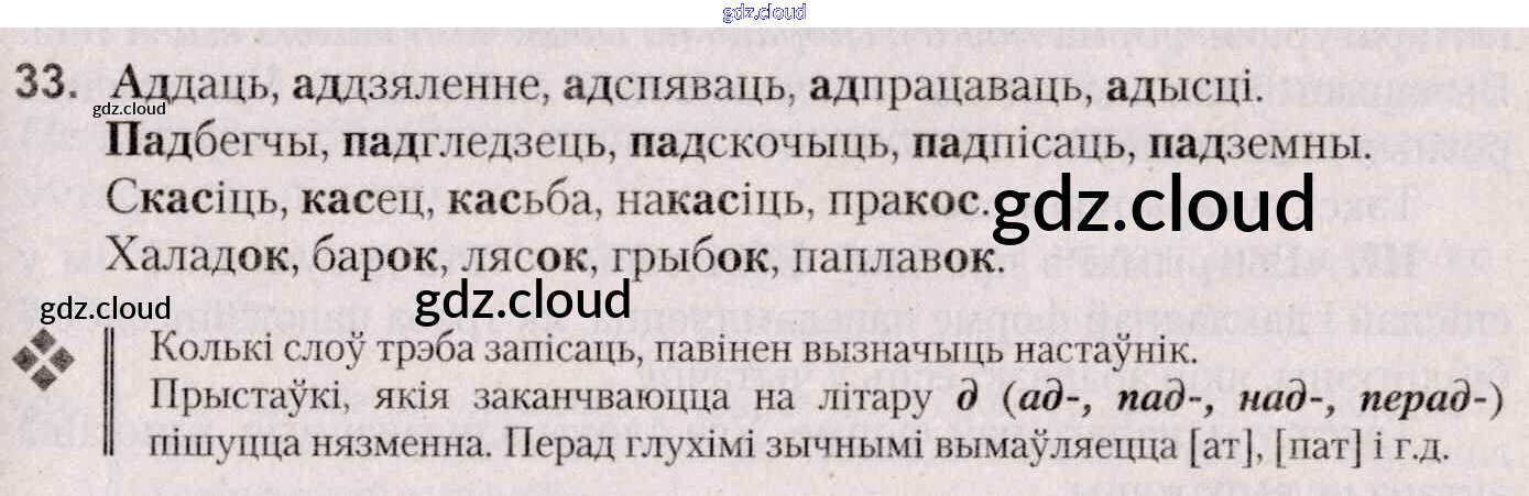 Ответ на задание 33 Учебник Белорусский язык за 7 (седьмой) класс Валочка, Язерская 2020