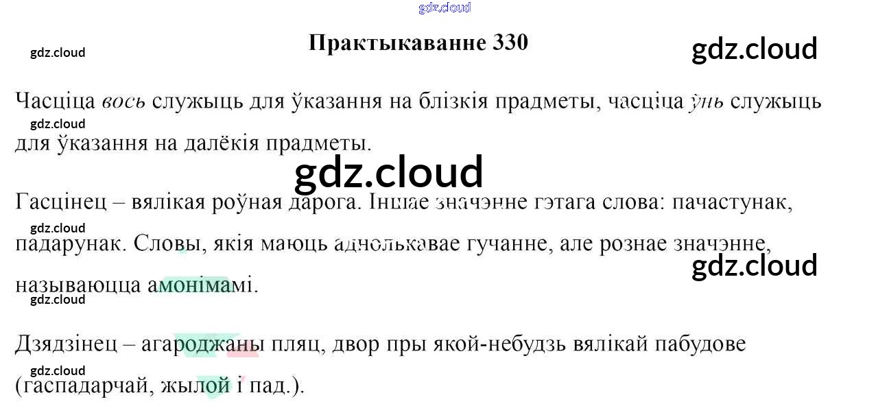 Ответ на задание 330 Учебник Белорусский язык за 7 (седьмой) класс Валочка, Язерская 2020