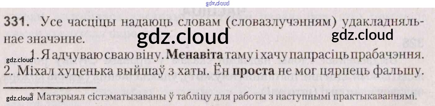 Ответ на задание 331 Учебник Белорусский язык за 7 (седьмой) класс Валочка, Язерская 2020