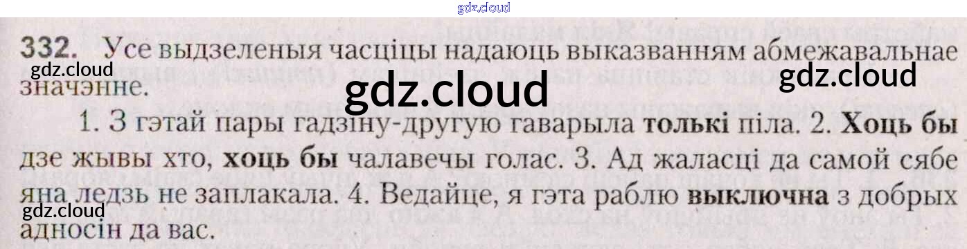 Ответ на задание 332 Учебник Белорусский язык за 7 (седьмой) класс Валочка, Язерская 2020