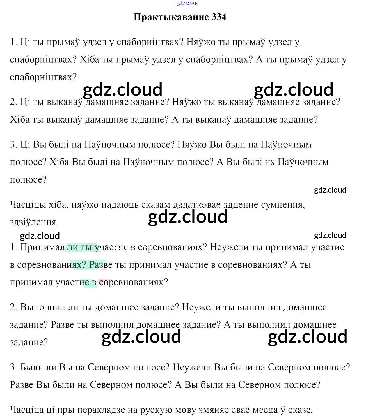Ответ на задание 334 Учебник Белорусский язык за 7 (седьмой) класс Валочка, Язерская 2020