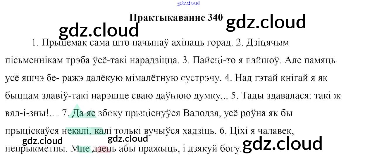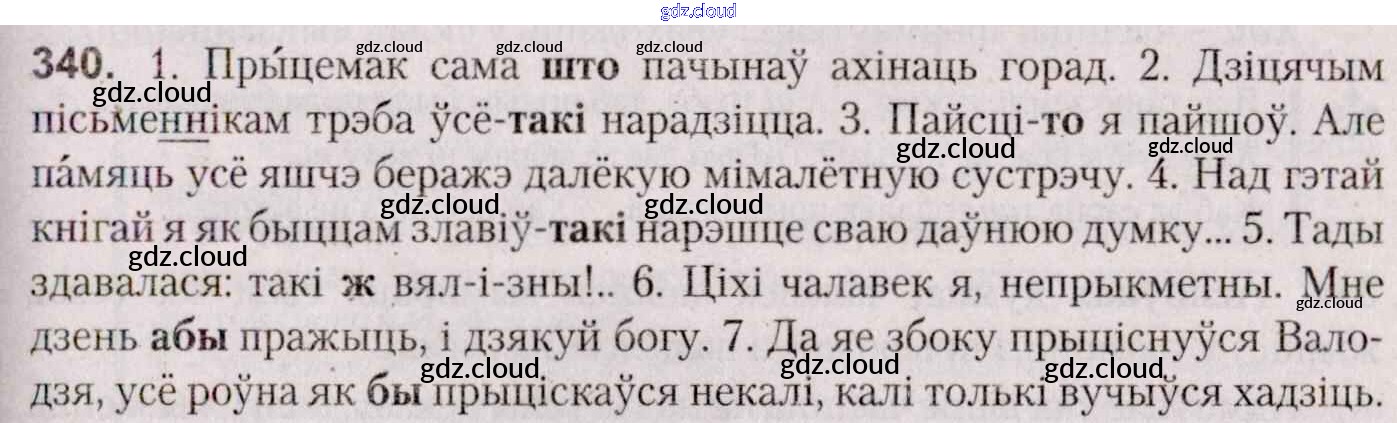 Ответ на задание 340 Учебник Белорусский язык за 7 (седьмой) класс Валочка, Язерская 2020