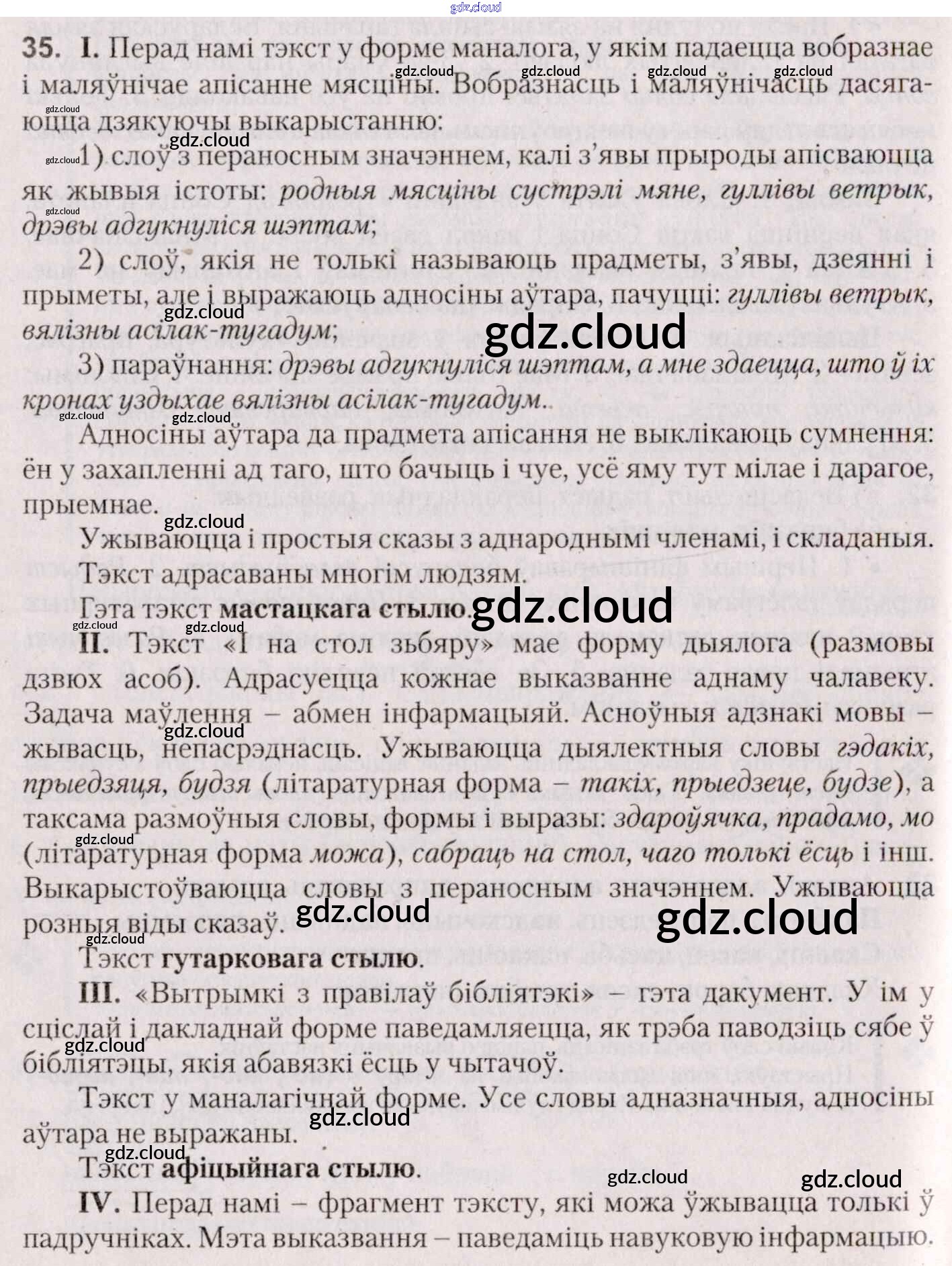 Ответ на задание 35 Учебник Белорусский язык за 7 (седьмой) класс Валочка, Язерская 2020