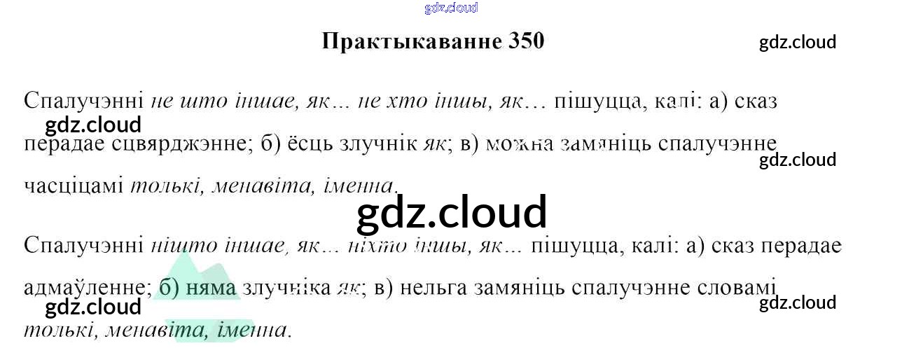 Ответ на задание 350 Учебник Белорусский язык за 7 (седьмой) класс Валочка, Язерская 2020