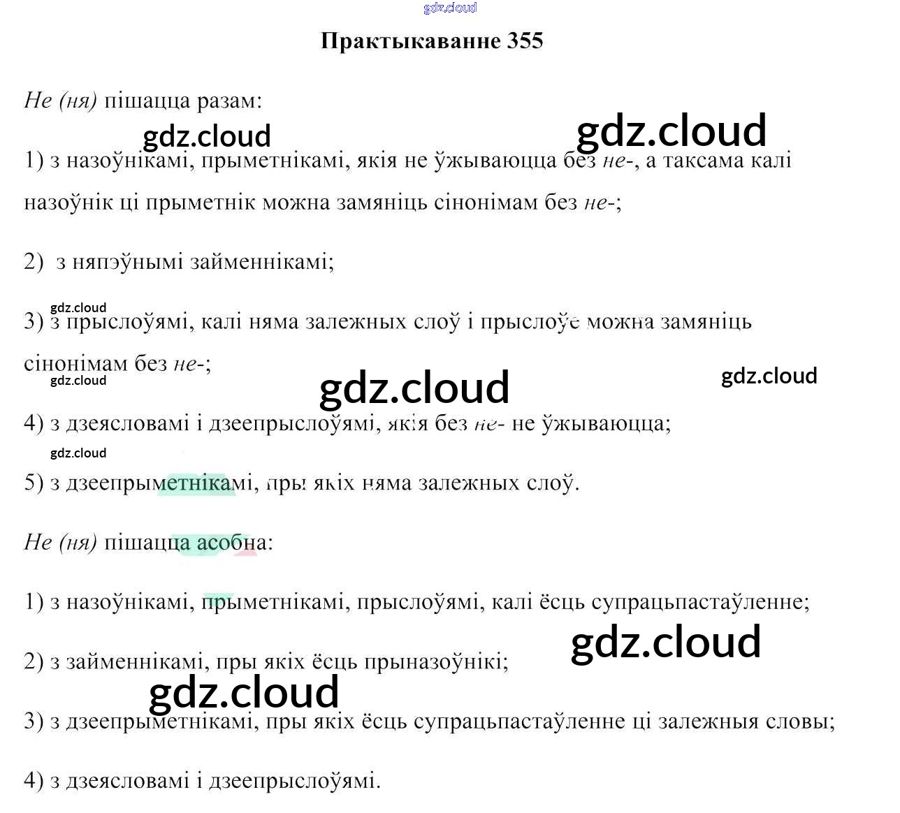 Ответ на задание 355 Учебник Белорусский язык за 7 (седьмой) класс Валочка, Язерская 2020