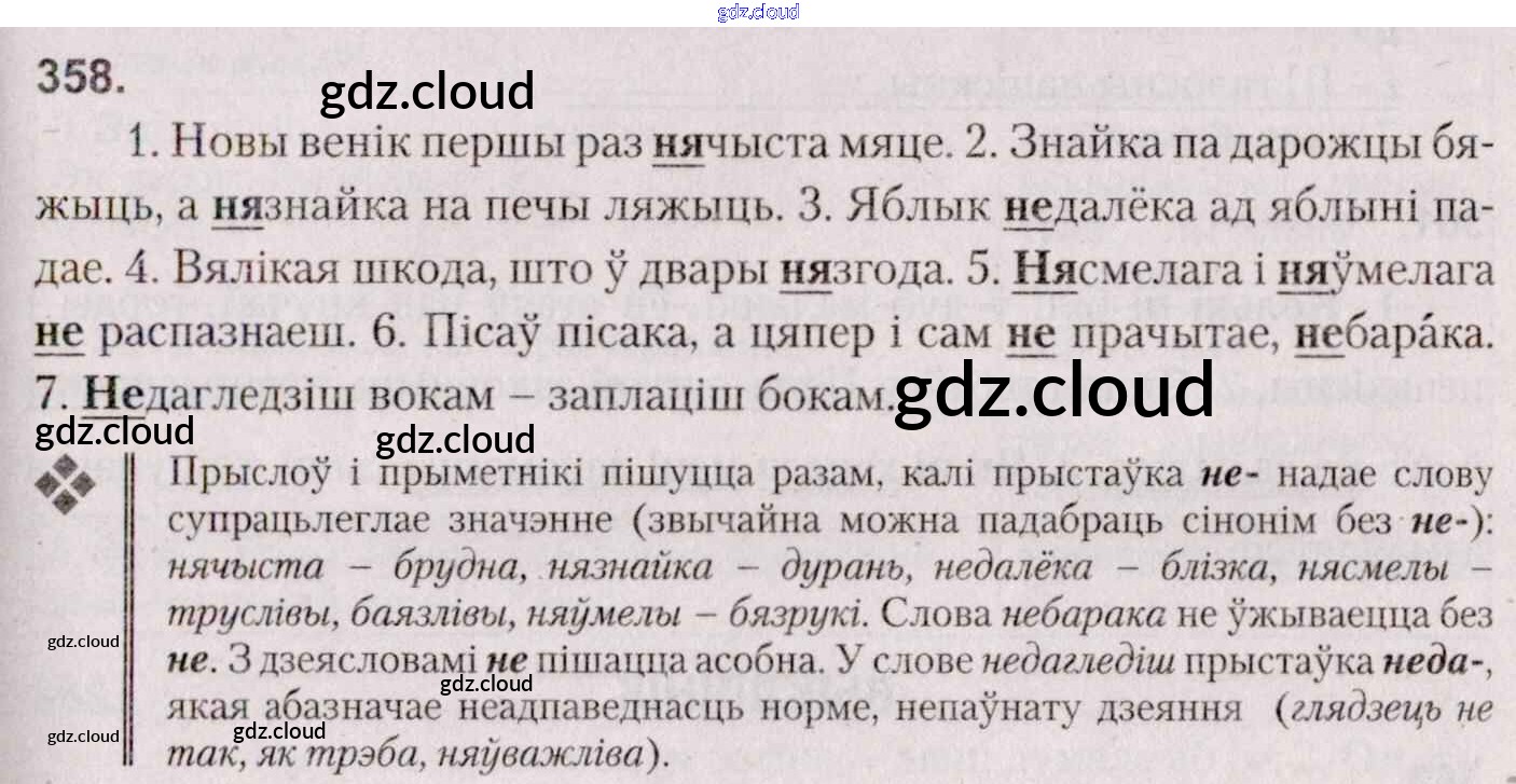Ответ на задание 358 Учебник Белорусский язык за 7 (седьмой) класс Валочка, Язерская 2020