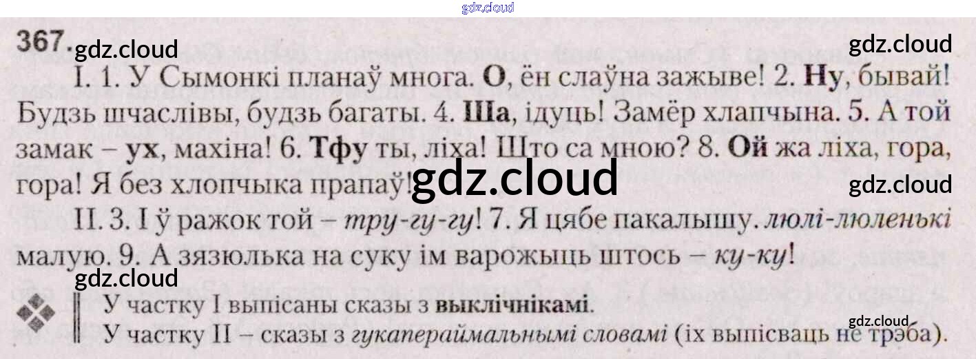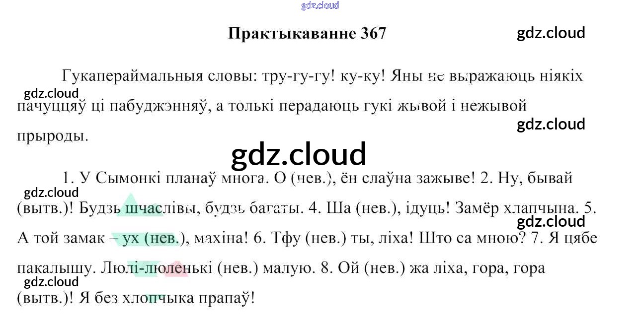 Ответ на задание 367 Учебник Белорусский язык за 7 (седьмой) класс Валочка, Язерская 2020