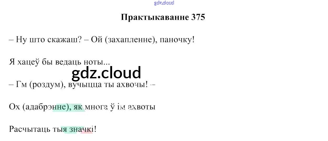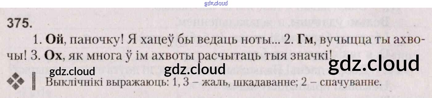 Ответ на задание 375 Учебник Белорусский язык за 7 (седьмой) класс Валочка, Язерская 2020